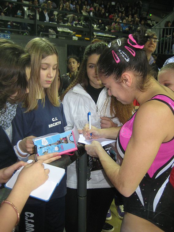 Dopo la pausa alla quale sono state chiamate, come da ordine di lavoro, le nostre “leonesse” devono affrontare senza incorrere ad alcune grave errore la trave. Salgono rispettivamente Joelle Elisabeth Mattoni che a parte qualche sbilanciamento chiude bene il suo esercizio. Martina Aliventi che a differenza di altre occasioni sembrava ispirata che con un buon esercizio apre le porte alla ritornata “Leonessa di Messapia”, Jessica Hélène Mattoni, la cui emozione era evidente così come la determinazione quale “Caporal Maggiore” dell’Esercito del Popolo di gridare… PRESENTE e… portare a compimento la propria consegna!