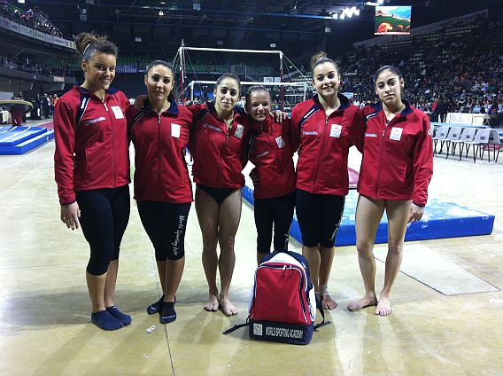 Partenza al volteggio con Joelle Elisabeth Mattoni che pur dolorante ad una spalla per una borsite non si esime dal compito di fare da apri pista ad un’esplosiva Aliventi Martina, suo il miglior punteggio di squadra sull’attrezzo, seguita da una trepidante e questa volta emozionata Jessica Hélène Mattoni. Ferme ai box quali riserve pronte ad adempiere al proprio mandato una rinnovata Francesca Mattioli, la esordiente Benedetta Peyrone e sua sorella Veronica.