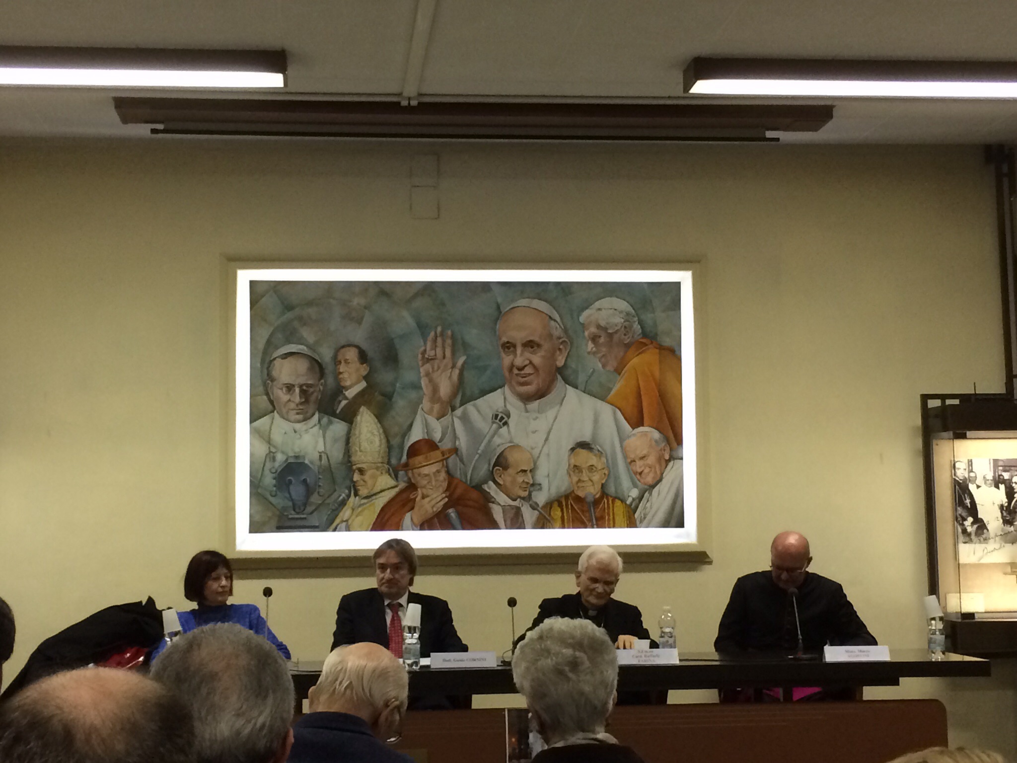 È poi intervenuto Guido Cornini, curatore del Reparto Arti Decorative dei Musei Vaticani, che ha letto un passo del volume dove sono descritti i diversi tipi di visitatori di San Pietro: “C’è il turista più o meno preparato a vedere cose belle, ad osservare cose diverse da quelle che scorge nelle grandi vetrine dei negozi moderni, e che s’accontenta della contemplazione dell’opera in ratione naturae, ossia gli basta ciò che è rappresentato: il fatto, la persona. C’è pellegrino che guarda le opere con una partecipazione che possiamo chiamare emotiva dovuta alla “simpatia” con le stesse cose rappresentate, vede in esse quod naturae modum excedit. Ma c’è anche il visitatore, pellegrino e turista, che insieme agli atteggiamenti testé ricordati, coglie le opere nel loro elemento materiale e tecnico, nel loro fine, nella loro collocazione storica, nella loro dipendenza dalla personalità singolare dell’artista, che osserva il modo estetico con cui sono fissate”.