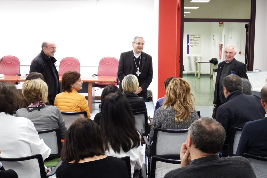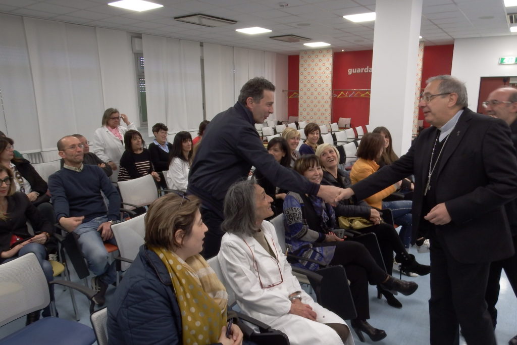 Il vescovo ha ricordato come le cure mediche debbano essere affiancate dall’empatia: «Non solo giuste medicine, ma anche relazioni umane. Altrimenti si rischia la spersonalizzazione. Chiediamoci sempre come vorremmo essere trattati noi nel caso fossimo in un letto d’ospedale». Durante il colloquio, il vescovo ha raccontato qualche aneddoto sulle sue passate visite all’ospedale. In uno, si manifesta una concreta forma di integrazione interreligiosa: «Ho fatto visita ad un ricoverato musulmano che, pur manifestandomi la sua fede differente, ha comunque voluto la mia benedizione». Insomma: al di là del credo personale, una parola di conforto è davvero linguaggio universale di speranza.