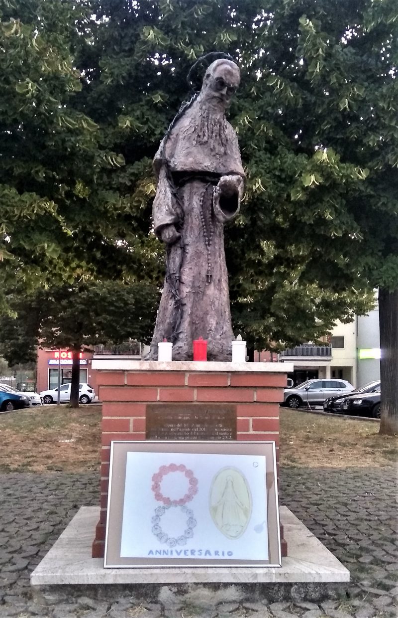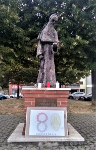 La statua di San Massimiliano Kolbe: tra il 2011 e il 2012 abbiamo avviato una serie di iniziative volte alla realizzazione della statua in bronzo del nostro fondatore, statua che oggi si trova al centro di Piazza Kolbe. Tutto ha inizio nei primi mesi del 2011 quando il maestro Primo Angellotti ci diede la sua disponibilità a realizzare una statua in gesso di San Kolbe; questa prima statua è stata inaugurata proprio il 14 agosto, in occasione del 70mo anniversario del santo, alla presenza del Vescovo Gestori. Poi, a partire da quella, è stata realizzata la versione bronzea (grazie ai contributi della parrocchia, del Centro Regionale della Milizia e di molti fedeli) che è stata collocata nell’omonima piazza il 26 maggio 2012, alla presenza dell’artista Primo Angellotti, del parroco della parrocchia di Sant’Antonio di Padova padre Gabriele Lupi, dell’artista teatrale Renzo Arato e delle autorità cittadine.