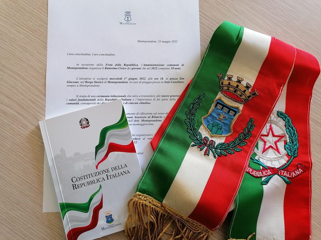 MONTEPRANDONE – In occasione della Festa della Repubblica, il Comune di Monteprandone organizza il “battesimo civico” dei diciottenni, una cerimonia istituzionale che ha l’obiettivo di trasmettere alle nuove generazioni i valori fondamentali della Costituzione italiana e l’importanza di far parte della comunità consapevoli dei diritti e dei doveri di essere cittadino.
