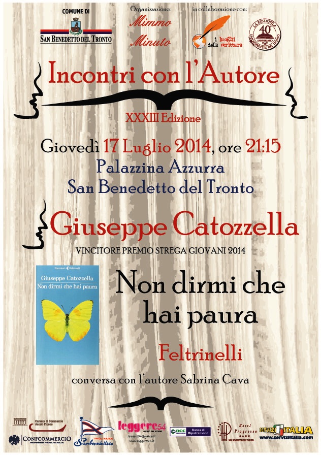 Giovedì 17 luglio, alle 21,30, in Palazzina Azzurra Giuseppe Catozzella, vincitore del Premio Strega Giovani 2014 e finalista dello stesso Premio, presenterà il suo libro “Non dirmi che hai paura”. Converserà con l’autore Sabrina Cava.