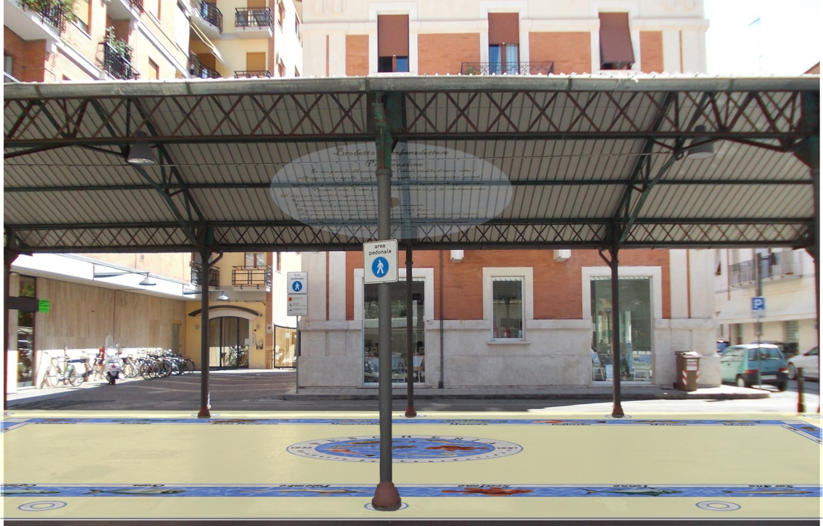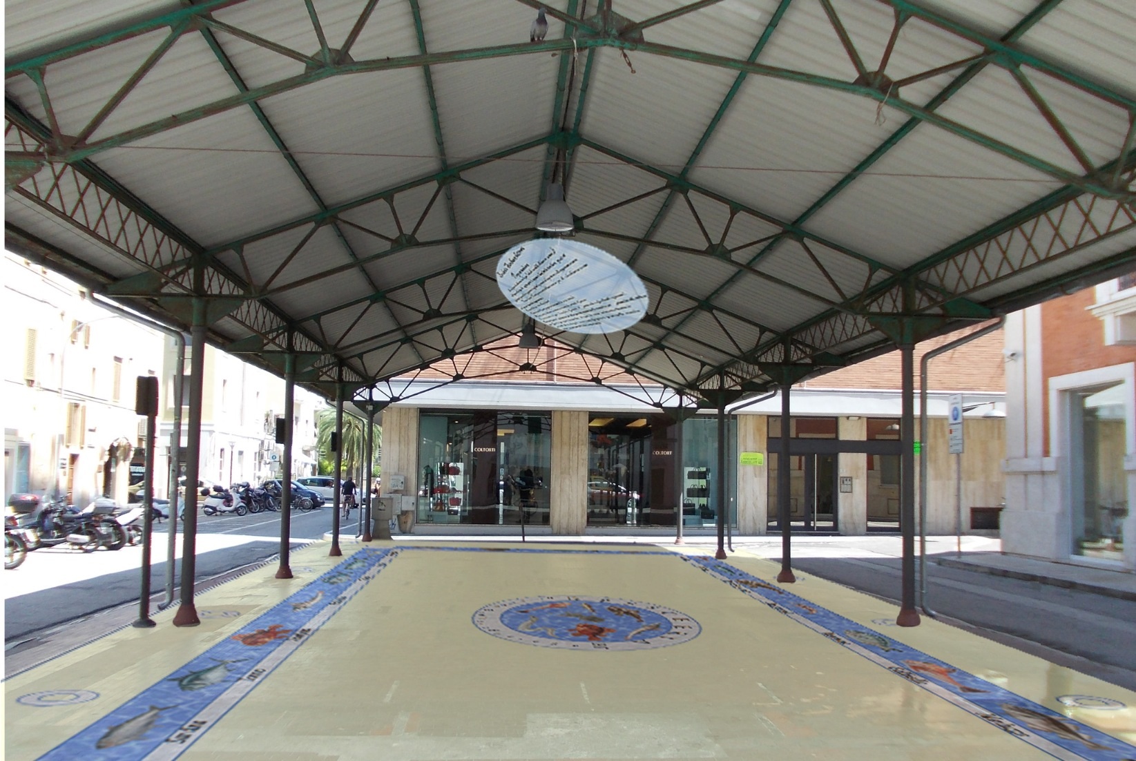 – Conservazione della memoria storica,che rappresenta la parte centrale dell’idea di riqualificazione mediante la realizzazione di una nuova pavimentazione nella quale inserire all’interno dell’area delimitata dalle colonne di sostegno della copertura una sorta di cornice con pavimento a mosaico rappresentante specie ittiche tra le più pescate nel nostro mare,con sotto un’ulteriore piccola cornice realizzata con altro materiale con inciso il nome dei pesci sovrastanti,eventualmente anche con la dicitura dialettale.