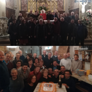A cosa noi abbiamo insegnato loro? Noi in sessant’anni abbiamo ricevuto tanta esperienza e ora questa ricchezza dobbiamo donarla ai più giovani, insegnare la gratuità, l’oblatività, il dono. In tanti anni abbiamo compreso che la vera gioia non viene dalle cose materiali, ma dalle relazioni, dalle buoni relazioni, quelle che non si basano sull’interesse, ma sulla gratuità. Se siamo insieme qui stasera significa che crediamo nelle relazioni. Che ci piace stare insieme. Facciamo entrare Gesù nella nostra vita, nel nostro cuore, solo con Lui al nostro fianco saremo felici. Facendo entrare Gesù nella nostra vita comprenderemo che anche nelle difficoltà Lui non ci abbandona e ci dona coraggio e amore. Abbiamo così tanta bellezza dentro di noi da tirar fuori, con l’aiuto di Dio riusciremo a essere dono per gli altri”.