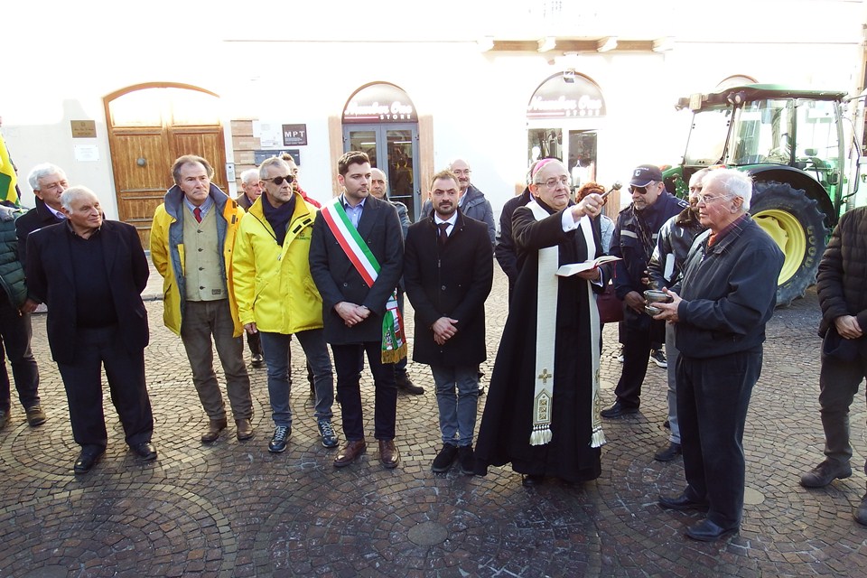 Terminata la funzione, ci si è spostato sulla piazza prospiciente la chiesa, dove il vescovo ha benedetto alcuni trattori, alla presenza del sindaco cuprense, Alessio Piersimoni e dei dirigenti dell’associazione di categoria: il presidente Armando Marconi ed il direttore Alessandro Visotti.