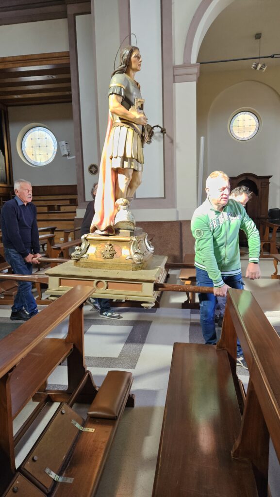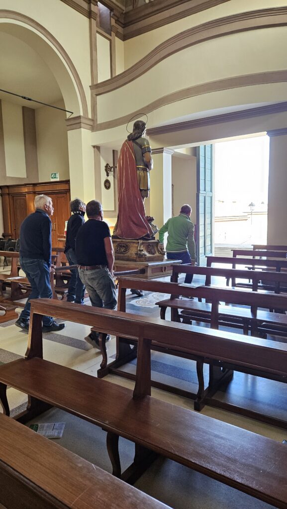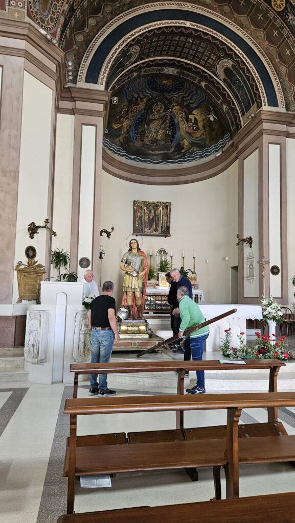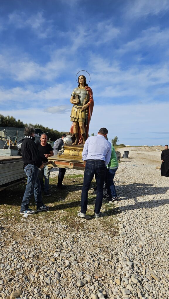 CUPRA MARITTIMA – Un momento carico di emozione: la partenza della statua di San Benedetto Martire da Cupra Marittima, diretta al porto di San Benedetto del Tronto. Intorno alle 14:00 di ieri, domenica 13 ottobre, la statua è stata prelevata dalla chiesa di San Basso e Santa Margherita a Cupra Marittima. “Per tre giorni la statua è rimasta presso la comunità di Cupra Marittima – ci ha spiegato il diacono Luciano Caporossi – e ora, come da tradizione, partirà via mare su una barca”, per giungere con il sindaco di Cupra Alessio Piersimoni e il parroco Don Roberto Traini fino al porto di San Benedetto.