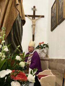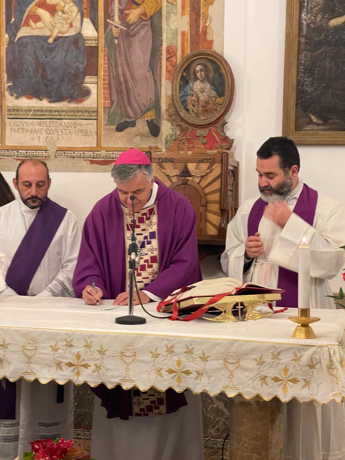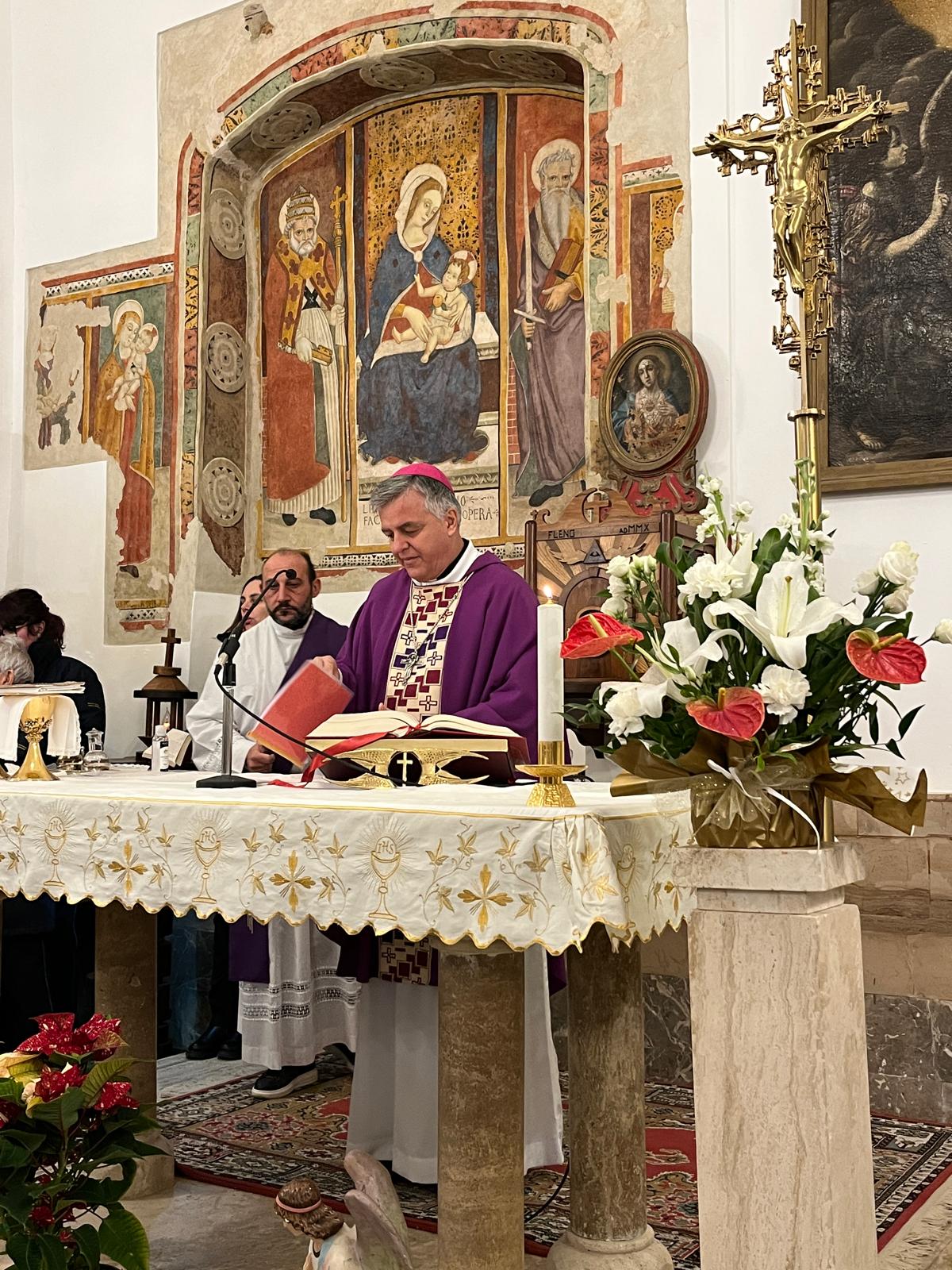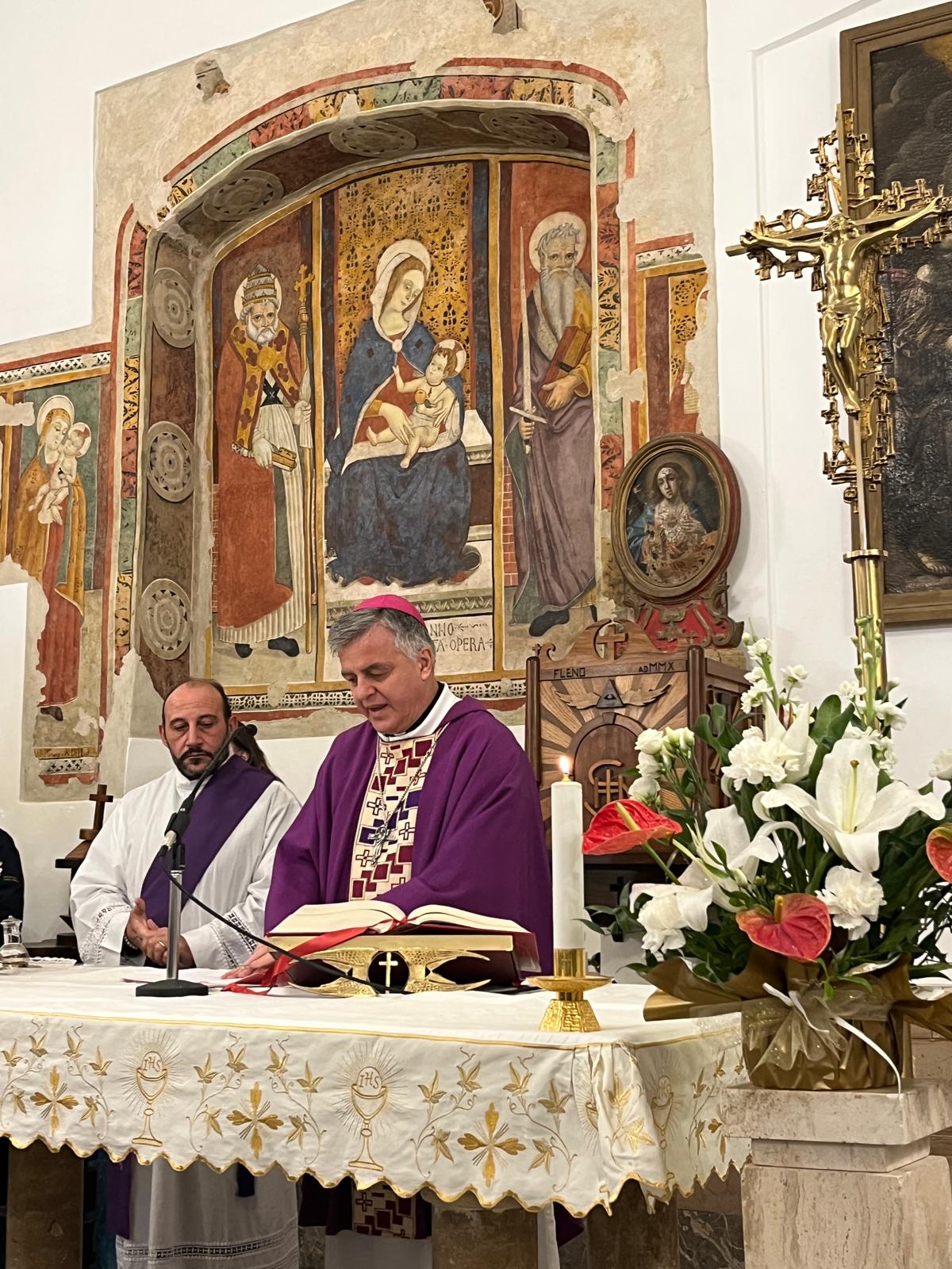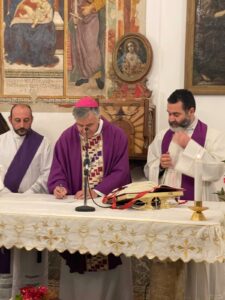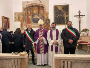 Nell’edificio sacro, la cui costruzione risale al XV secolo, mons. Palmieri ha presieduto la Santa Messa, che è stata concelebrata dal nuovo amministratore parrocchiale don Riccardo Patalano, dal diacono Giuseppe Golia e da tutta l’assemblea riunita.