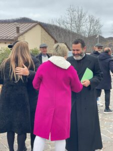 «Rivolgo un ringraziamento prima di tutto al nostro Signore, per averci donato don Riccardo, poi a sua Eccellenza il vescovo Gianpiero, per averlo scelto, ed infine a tutti voi, per averlo accolto come parroco. Dalle poche parole che ha detto, precisando che non conosceva questa zona montana, già possiamo comprendere il suo carisma, la sua grande figura, la sua umanità, la sua vicinanza alla nostra comunità, tutte caratteristiche che non sono scontate. Sono certo che sarai ponte tra i territori, ponte tra le generazioni. Queste comunità sono molto vicine al Signore e hanno uno Spirito che le unisce. Lo hanno dimostrato negli anni i nostri nonni, i nostri genitori, che ce lo raccontano. La devozione è sempre stata molto forte. Purtroppo negli ultimi anni abbiamo perso la fiducia. Non dico la fede, ma ma la fiducia, forse in noi stessi, nei nostri territori e nelle opportunità che possono offrire. Siamo tutti molto vicini, ma l’evoluzione degli ultimi anni, pian piano, ci ha fatto perdere l’attaccamento ai nostri territori. Forse questo è un momento cruciale, in cui siamo chiamati a riavvicinarci alle nostre radici, rinsaldando il legame con il Signore e con le nostre famiglie. La pandemia ed il sisma ci hanno tolto anche la fiducia nel futuro. Oggi, allora, abbiamo bisogno di una prospettiva. Questo è il compito che ti attende, caro don Riccardo. E questo è il compito che attende anche noi parrocchiani: come comunità, infatti, siamo chiamati a partecipare, ad essere attivi e a raccontare la bellezza del nostro territorio, luoghi in cui ancora possiamo lasciare le chiavi sul portone».