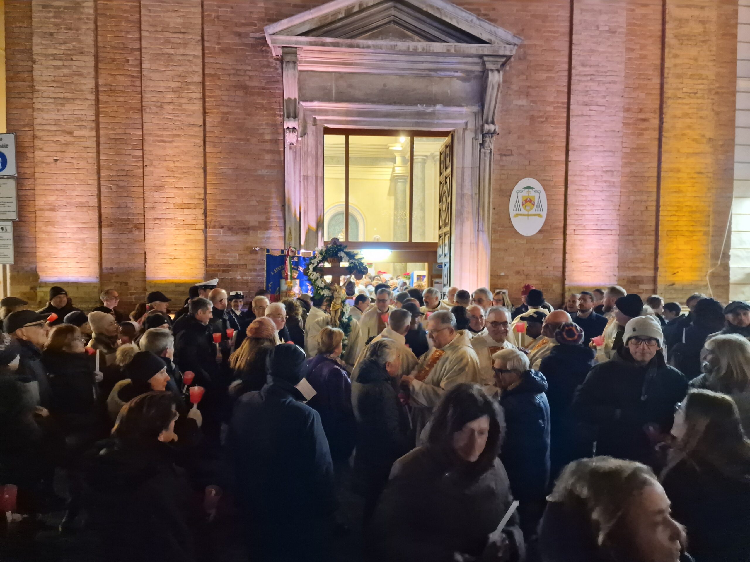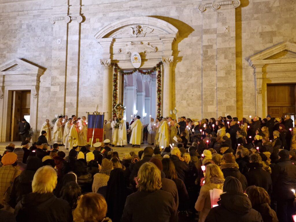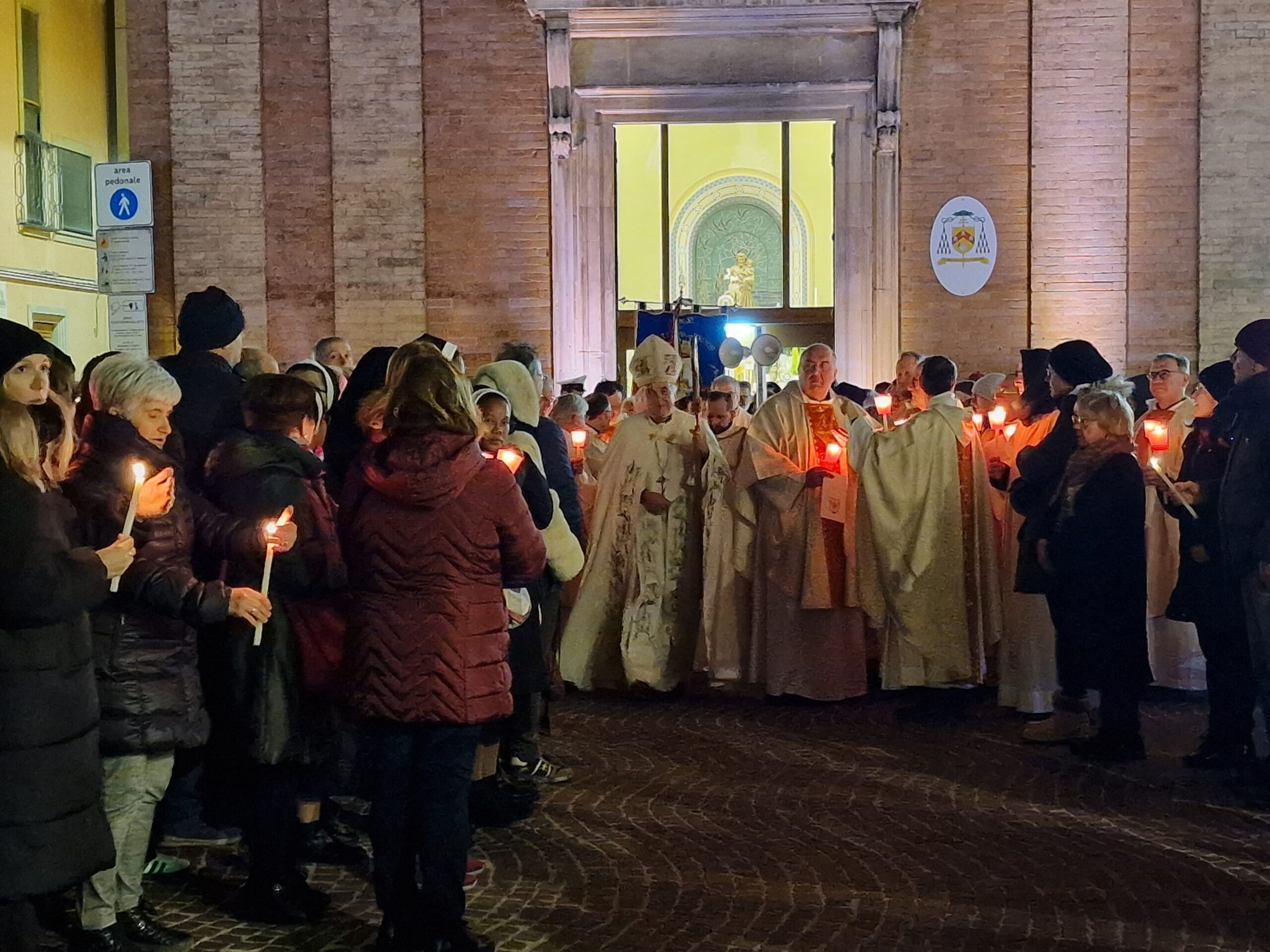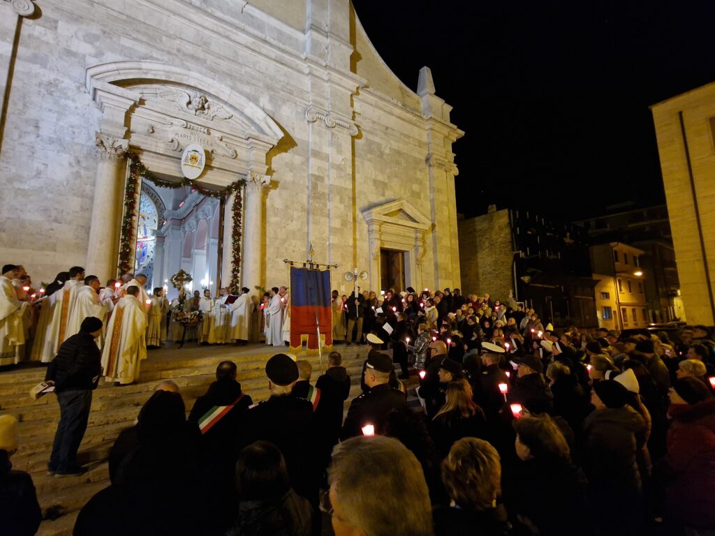 La comunità cristiana della Diocesi Truentina si è ritrovata in prima serata davanti alla chiesa di San Giuseppe, lungo il viale Secondo Moretti in San Benedetto del Tronto, per vivere il primo momento forte della cerimonia: l’accensione delle candele dalla luce di Betlemme e, a seguire, la processione verso la cattedrale.