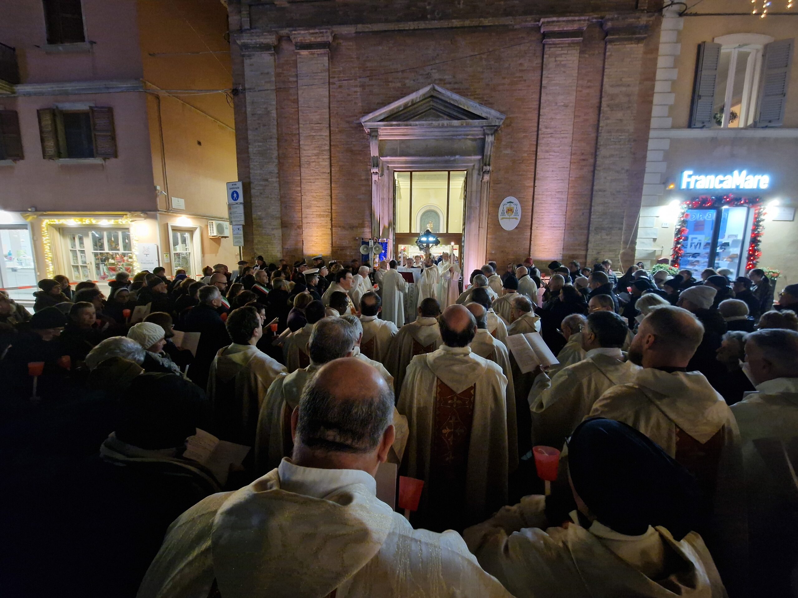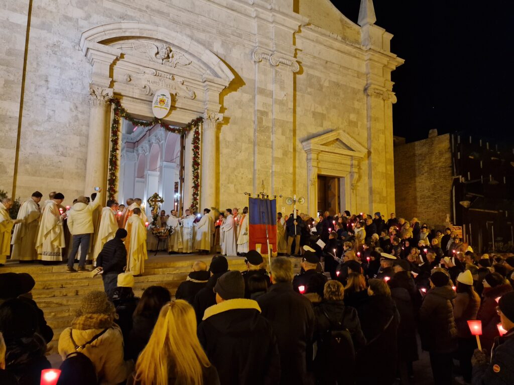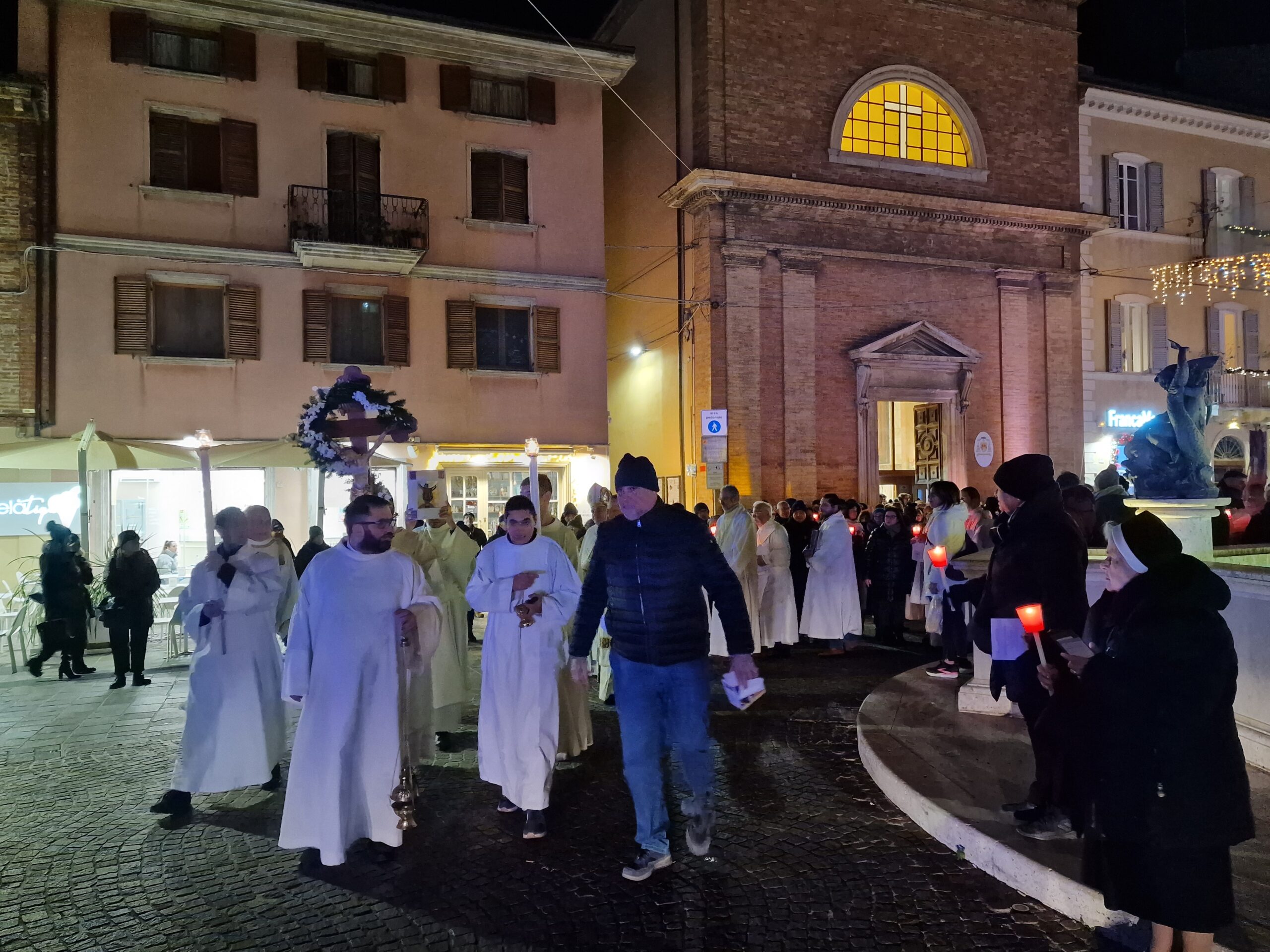 La comunità cristiana della Diocesi Truentina si è ritrovata in prima serata davanti alla chiesa di San Giuseppe, lungo il viale Secondo Moretti in San Benedetto del Tronto, per vivere il primo momento forte della cerimonia: l’accensione delle candele dalla luce di Betlemme e, a seguire, la processione verso la cattedrale.