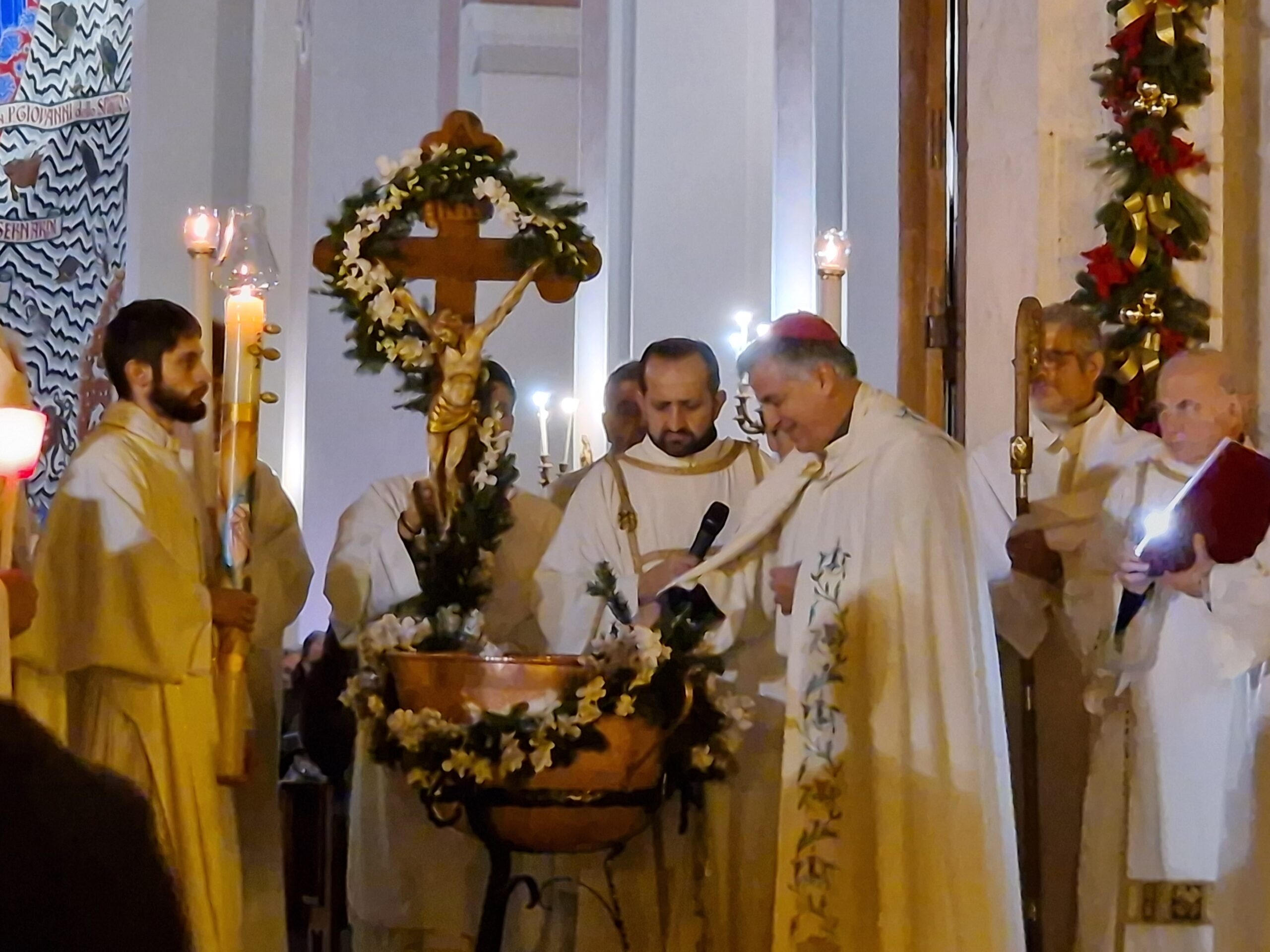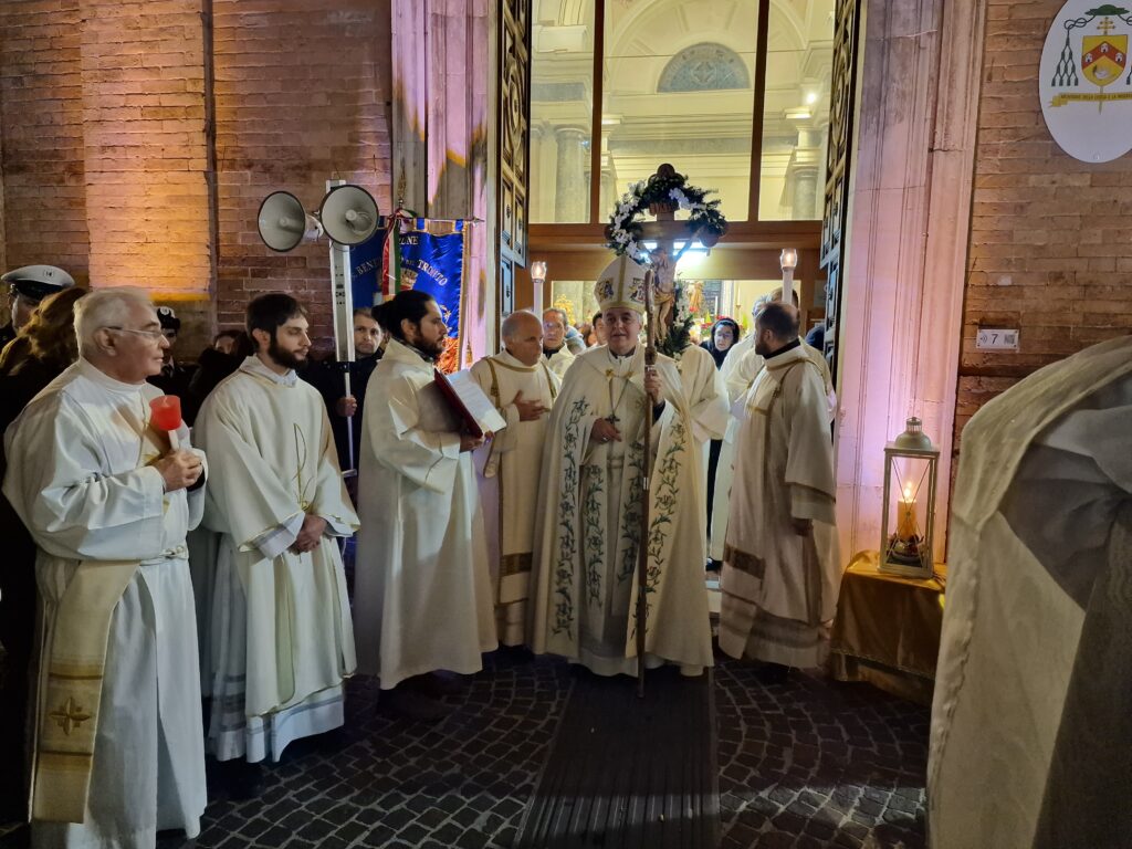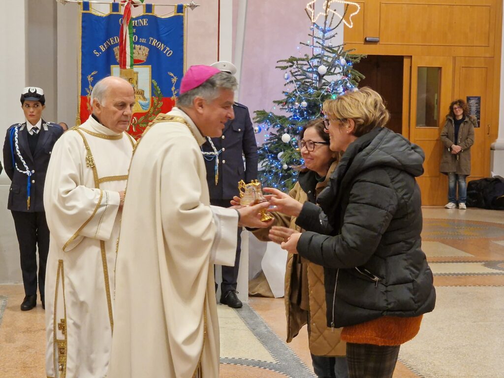È il segno luminoso della croce, nostra àncora di salvezza! Il segno di quella speranza che non delude, di cui parla San Paolo nella Lettera ai Romani (Rm 5,5) e che è il messaggio centrale del Giubileo 2025. Una speranza che, proprio come nelle intenzioni di papa Francesco, ha abbracciato tutti: sacerdoti e diaconi delle due Diocesi del Piceno, riuniti insieme; il numeroso popolo di Dio, proveniente dai vari Comuni del territorio interdiocesano, composto da bambini, giovani, adulti ed anziani; esponenti dei vari gruppi, associazioni e movimenti diocesani; autorità militari e civili, a partire dai sindaci delle tre città sedi delle concattedrali truentine: Antonio Spazzafumo, Alessandro Lucciarini De Vincenzi e Daniel Matricardi, rispettivamente primi cittadini di San Benedetto del Tronto, Ripatransone e Montalto delle Marche e del Sindaco di Grottammare, Alessandro Rocchi.