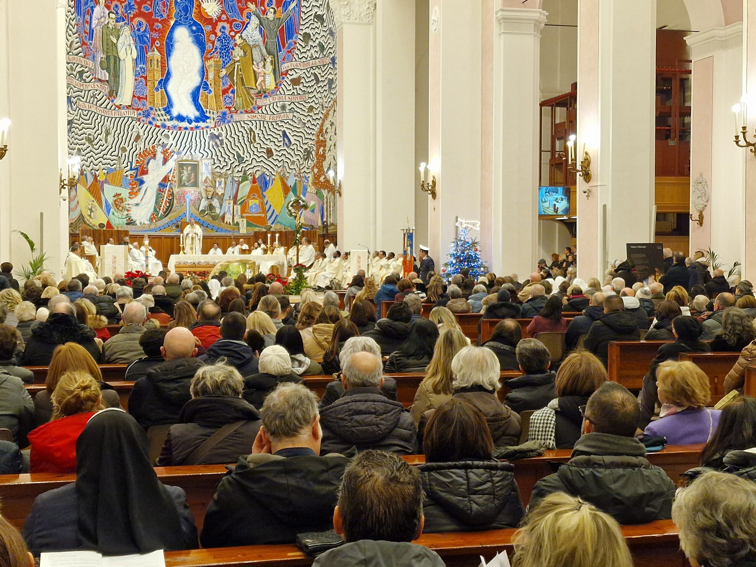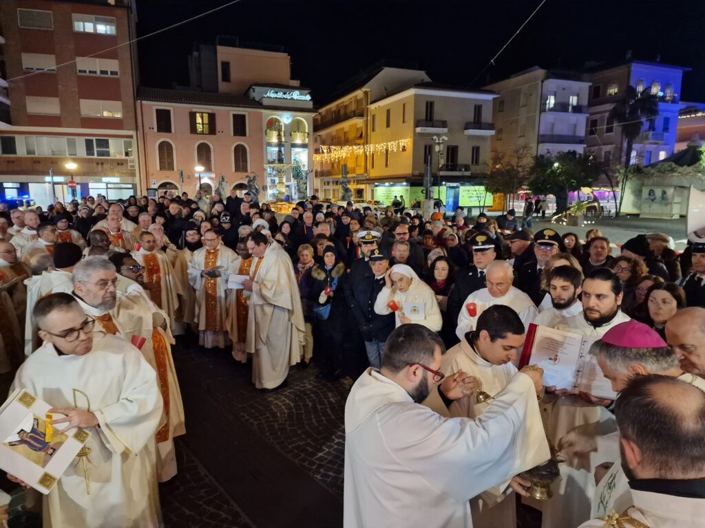 Queste le parole con cui il vescovo Gianpiero ha salutato la numerosa folla accorsa: «Fratelli e sorelle, il Mistero dell’Incarnazione del nostro Salvatore Gesù Cristo, custodito nella comunione di amore della Santa Famiglia di Nazareth, è per noi motivo di gioia profonda e di speranza certa. In comunione con la Chiesa universale, mentre celebriamo l’amore del Padre, che si manifesta nella carne del Verbo fatto uomo e nel segno della croce, ancora di salvezza, apriamo solennemente l’Anno Giubilare per la nostra Chiesa Truentina. Questo rito è per noi preludio di una ricca esperienza di grazia e di misericordia, pronti sempre a rispondere a chiunque ci domandi ragione della speranza che è in noi, specialmente in questo tempo di guerre e di disordini. Cristo, nostra pace e nostra speranza, sia nostro compagno di viaggio in questo anno di grazia e di consolazione. Lo Spirito Santo, che oggi inizia questa opera in noi e con noi, lo porti a compimento fino al giorno di Gesù Cristo».