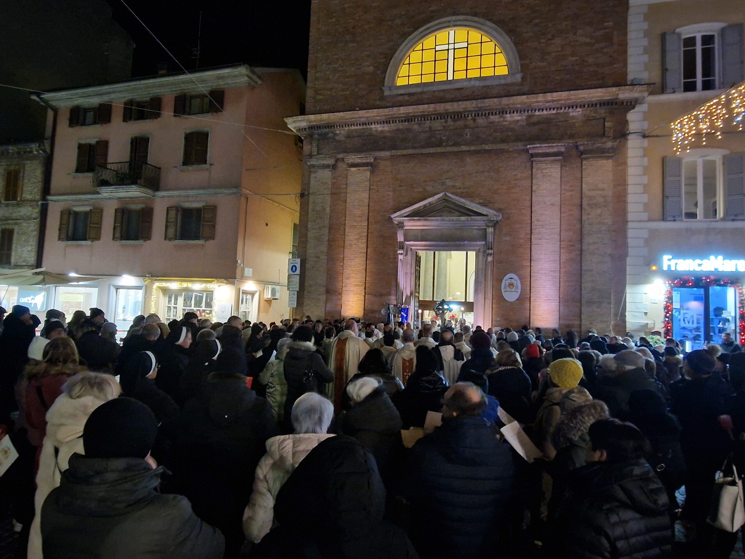 Allora vorrei dirvi, senza retorica, che il primo segno di speranza siete voi, voi che siete qui radunati stasera, voi che custodite il segreto della speranza, che è il Signore Gesù, il Crocifisso Risorto! È straordinario: ancora oggi, duemilaventicinque anni dalla nascita di Gesù, il suo Nome convoca, riunisce, dona salvezza e speranza a tante persone in ogni luogo della terra. E oggi nel territorio di San Benedetto del Tronto ha convocato voi!