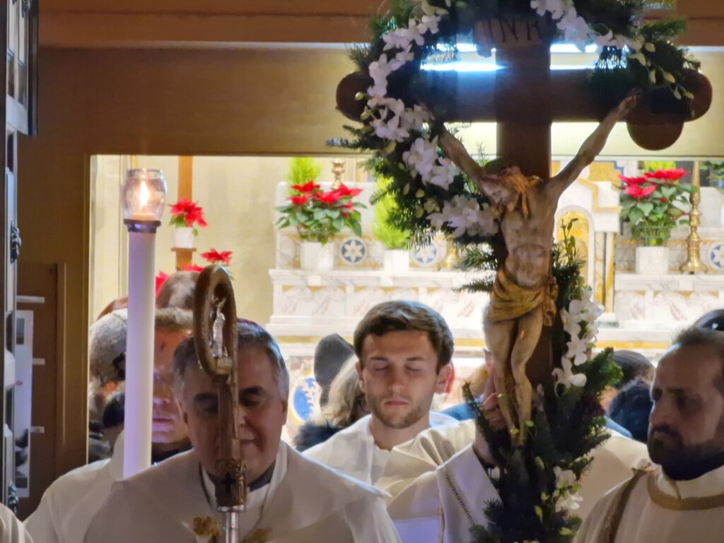 DIOCESI – Una cascata di fiori bianchi, intrecciati intorno alla croce, fino a formare la sagoma di un’ancora: è questa l’immagine più bella e significativa della solenne celebrazione con la quale Sabato 28 Dicembre 2024, alle ore 21:00, l’arcivescovo Gianpiero Palmieri ha aperto l’Anno Giubilare nella Diocesi di San Benedetto del Tronto – Ripatransone – Montalto.