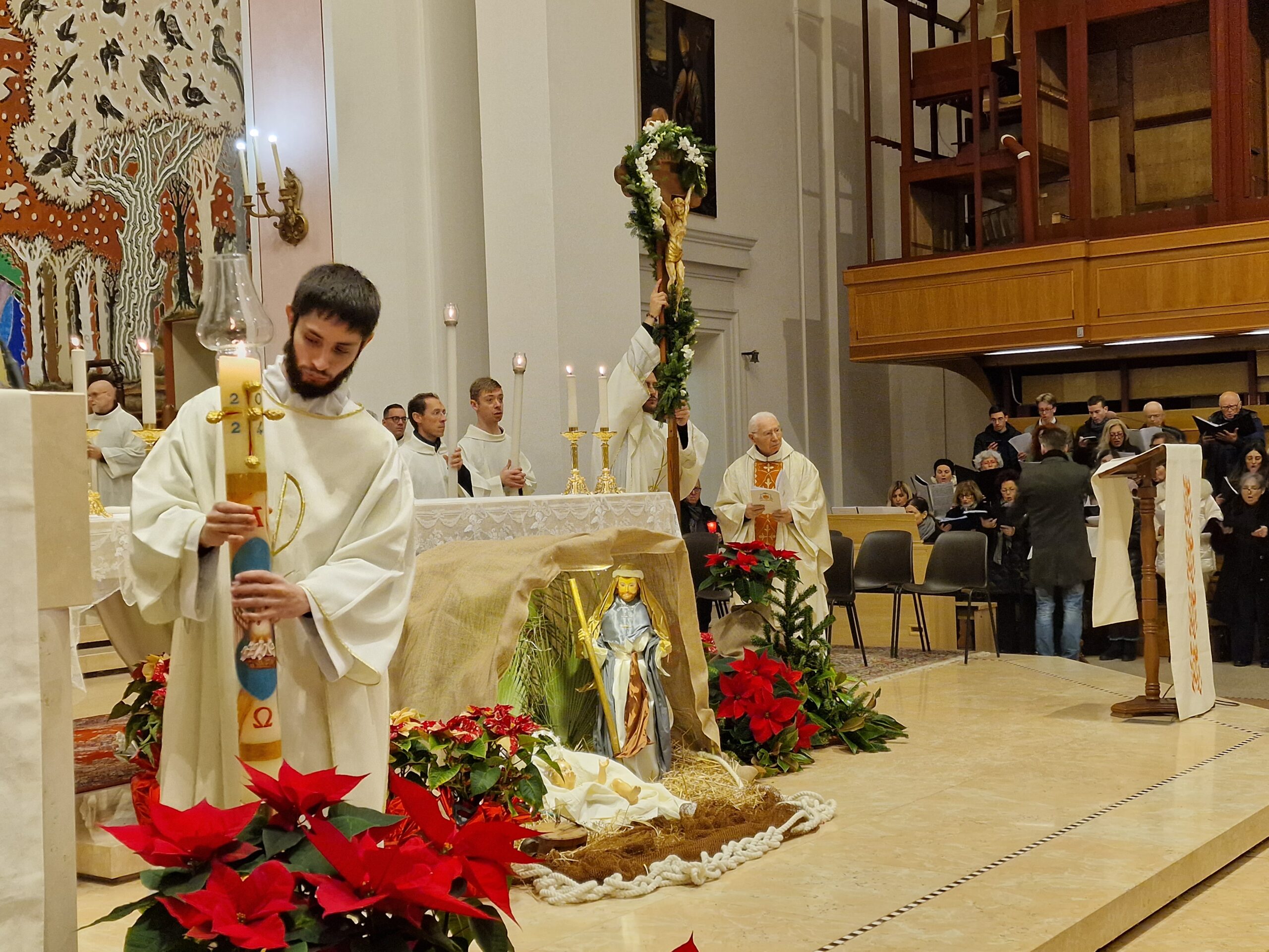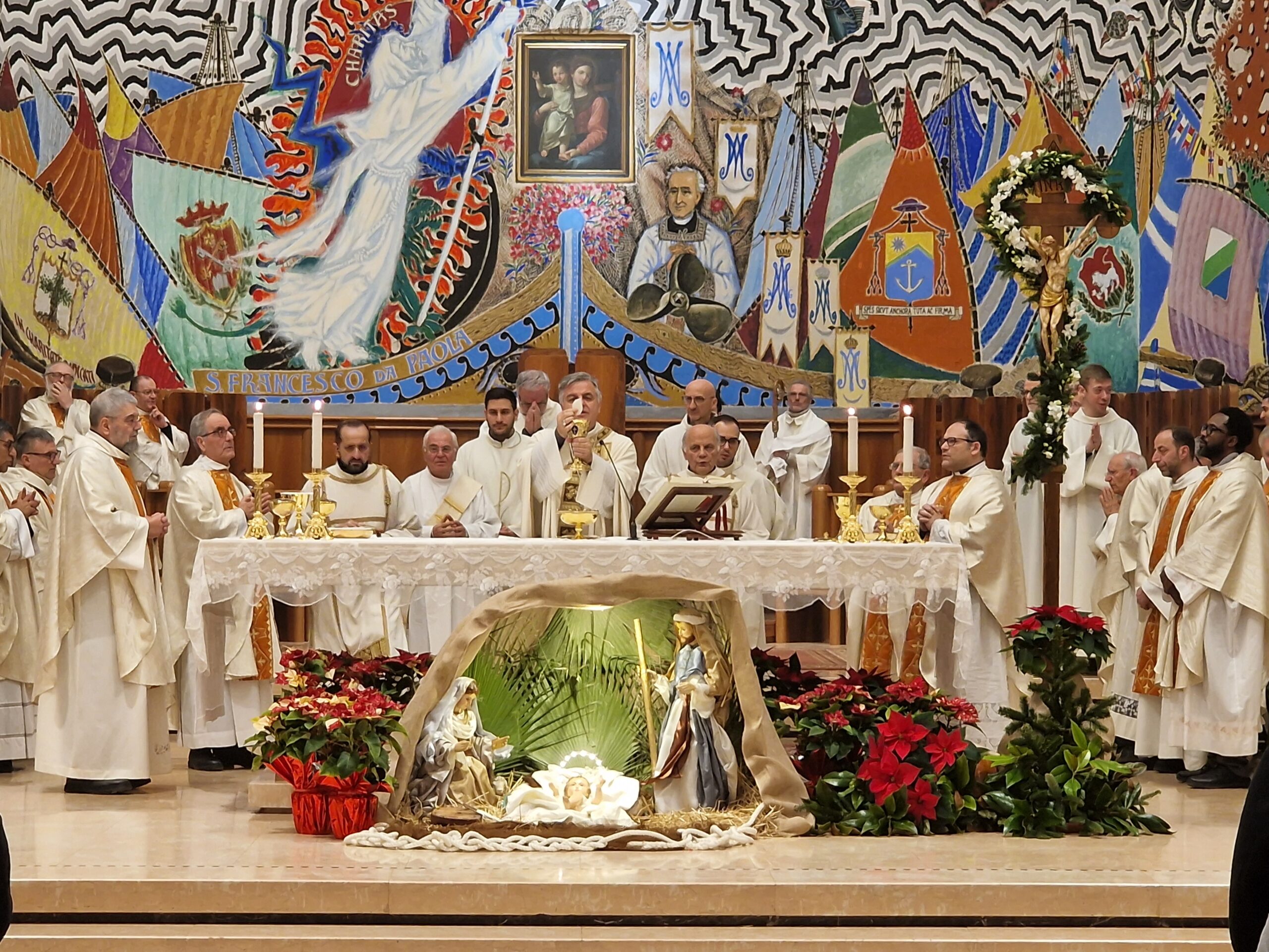 Dopo la proclamazione del Vangelo di Giovanni riguardante il Mistero dell’Incarnazione (Gv 1,1-5. 9-12.18), sono stati letti alcuni passi della Bolla di Induzione del Giubileo Ordinario 2025, riguardanti il tema centrale della Speranza.