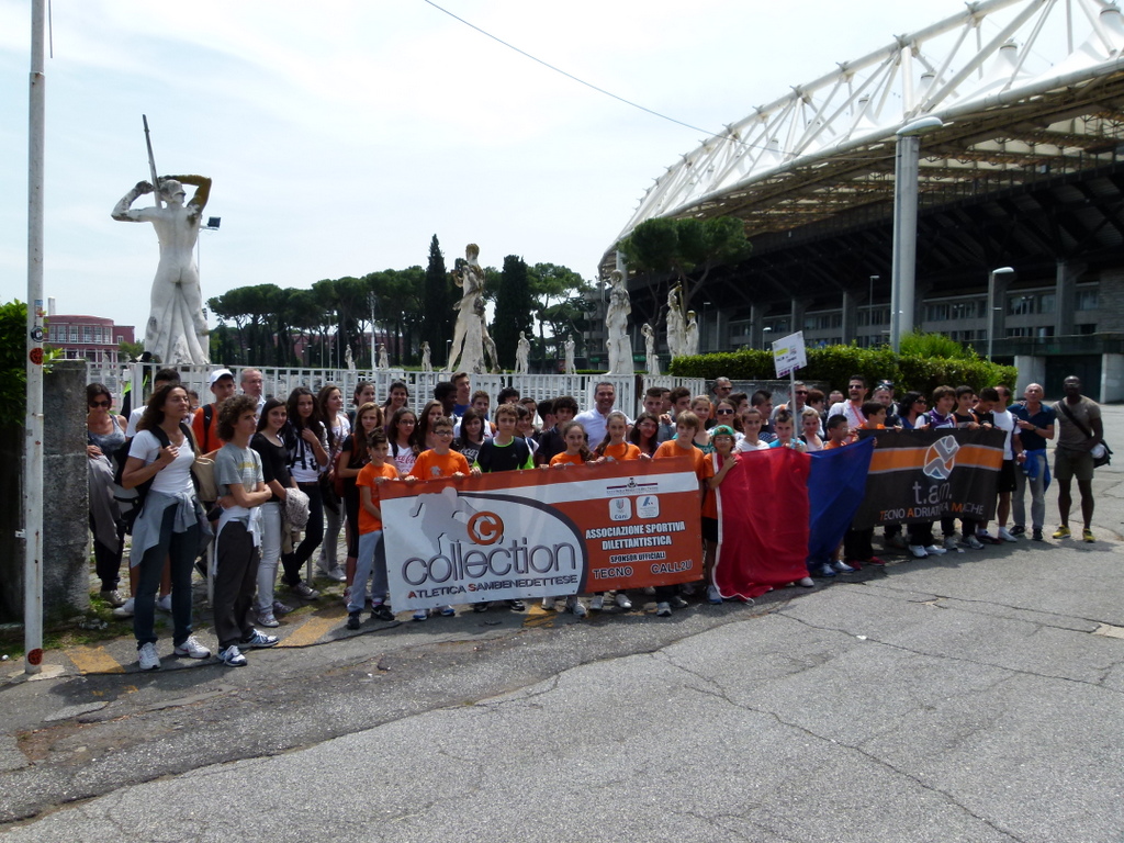 | Si è trattata di un’esperienza mozzafiato per i giovani staffettisti che hanno calcato la prestigiosa pista dello Stadio Olimpico di Roma, la stessa su cui in occasione delle Olimpiadi romane del 1960 Livio Berruti ha vinto l’oro olimpico; una presenza che ha permesso di far conoscere ulteriormente la nostra comunità grazie alla vetrina internazionale della manifestazione.Letteralmente entusiasta il presidente dell’A.s.d. Collection Atletica Sambenedettese Stefano Cavezzi che si è detto certo di ripetere la bellissima esperienza anche nel 2013 ripromettendosi di raggiungere l’obiettivo della finale che è stato sfiorato quest’anno. Ecco i nomi dei dodici protagonisti della staffetta: Rebecca Dondoni, Alessia Feliziani, Erika Parisani, Sara Piergallini, Federica Morelli, Silvia Pierantozzi, Jacopo Spinozzi, Loris Manojlovic, Pietro Novelli, Lorenzo Del Zompo, Marco Mancini, Nicolò Tomassini. |