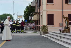 “Il cuore del Papa è vicino al vostro”. È l’amore di Dio “solido come una roccia” la “ferma speranza” sulla quale “si può ricostruire”. Ne è convinto Benedetto XVI, che ha salutato vescovi e sacerdoti, “rappresentanti delle diverse realtà religiose e sociali”, forze dell’ordine e “soprattutto – ha rimarcato a braccio – i volontari” per la loro “testimonianza concreta di solidarietà e di unità”. “Vorrei che tutti, in ogni paese, sentiste come il cuore del Papa è vicino al vostro cuore per consolarvi, ma soprattutto per incoraggiarvi e sostenervi”, ha detto ai presenti, e più in generale rivolto a tutte le popolazioni colpite, che vanno al di là dei confini regionali, coinvolgendo la bassa mantovana e l’alto polesine. Nel discorso, intervallato dagli applausi della folla, un ricordo lo ha dedicato a don Ivan Martini, “rendendo omaggio alla sua memoria”, rivolgendo poi un saluto ai sacerdoti e ai confratelli: “State dimostrando, come già è avvenuto in altre ore difficili della storia di queste terre, il vostro amore generoso per il popolo di Dio”.