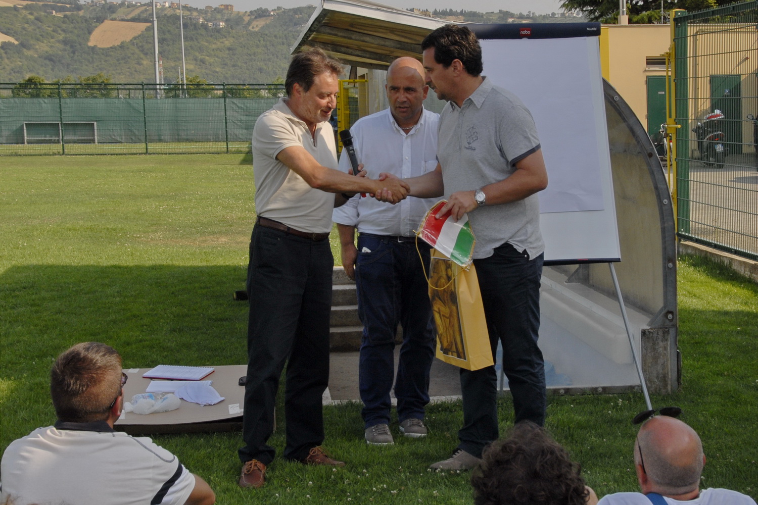 A presenziare l’evento il Vicesindaco Romano Speca. Omaggiando il tecnico con un cadeau della storia monteprandonese, Speca ha ripercorso la carriera di Ficcadenti nella vicina sambenedettese e ha ringraziato gli organizzatori di aver scelto Monteprandone come sede di un evento interprovinciale.