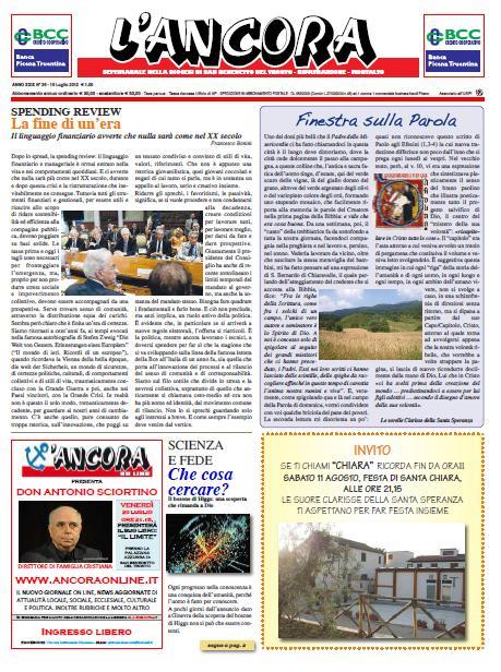 DIOCESI – Nelle parrocchie della Diocesi potrete trovare il nuovo numero del settimanale l’Ancora.