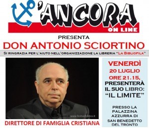 SAN BENEDETTO DEL TRONTO – Il direttore di famiglia cristiana Don Antonio Sciortino sarà presente venerdì 20 luglio alle ore 21.15 presso la palazzina azzurra di San Benedetto del Tronto per presentare il suo ultimo libro “Il limite”.