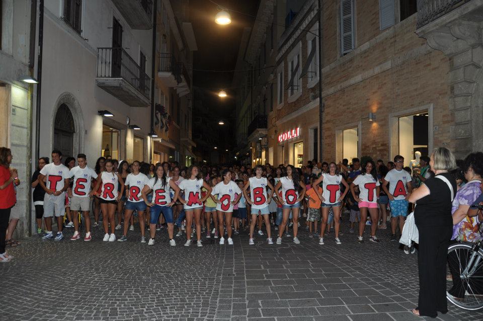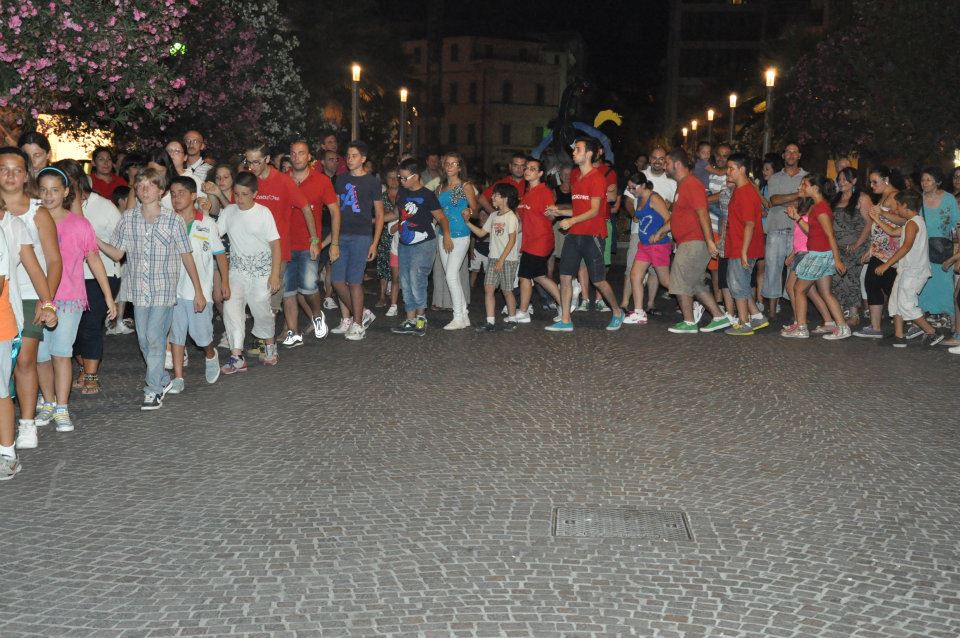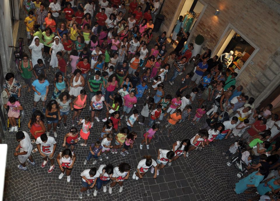 SAN BENEDETTO DEL TRONTO- Grande patecipazione e grande divertimento nel centro di San Benedetto ieri sera, sabato 21 Luglio. Il gruppo animatori del CSI di San Giuseppe ha voluto organizzare un “flash mob” in occasione del quale poter raccogliere fondi per l’ Emilia. Per chi non sapesse un “flash mob” è un evento in cui tante persone si incontrano nello stesso momento, nello steso posto per fare qualcosa insieme. In quest’occasione è stato scelto di eseguire una coreografia, interamente ideata da un’animatrice del CSI di San Giuseppe, sulle note di “Balada” di Gustavo Lima.