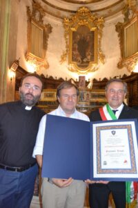 MONTELPARO – L’anno petrocchiniano montelparese prosegue, e domenica 22 luglio è stato consegnato il “Petrocchini d’Oro”; il premio che il Comune ha deciso di assegnare al cittadino che con la propria attività professionale e intellettuale, abbia contribuito a diffondere la conoscenza del paese in ambito nazionale. Il nome dell’onorificenza è un omaggio al montelparese Cardinale Gregorio Petrocchini, a cui -come più volte ricordato da L’Ancora in questi mesi- Montelparo ha deciso di dedicare il 2012 in occasione del quadricentenario della sua morte.