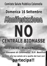 COLONNELLA – Il comitato salute pubblica Colonnella ha convocato per domenica 16 settembre alle ore 10.00 presso la piazza Novelli, una manifestazione pubblica per dire no alla centrale a Biomasse.