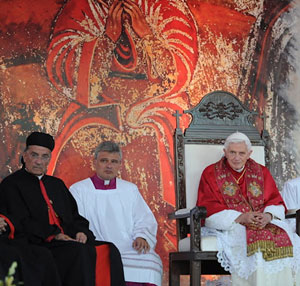 Comunione fraterna. “Con la consegna di questo documento, iniziano il suo studio e la sua appropriazione da parte di tutti i protagonisti della Chiesa, pastori, persone consacrate e laici, affinché ciascuno trovi una gioia nuova nel portare avanti la propria missione, essendo incoraggiato e fortificato per attuare il messaggio di comunione e di testimonianza declinato secondo i diversi aspetti umani, dottrinali, ecclesiologici, spirituali e pastorali di questa Esortazione”, ha affermato il Santo Padre alla consegna di “Ecclesia in Medio Oriente”, nella fase conclusiva della messa. “Cara Chiesa in Medio Oriente – ha auspicato Benedetto XVI -, attingi alla linfa originale della Salvezza che si è realizzata su questa Terra unica e amata tra tutte! Avanza sulle orme dei tuoi padri nella fede”. “La comunione fraterna – ha continuato – sia un sostegno nella vita quotidiana e il segno della fraternità universale che Gesù, primogenito di una moltitudine, è venuto ad instaurare! Così, in questa regione che ne ha visto gli atti e raccolto le parole, il Vangelo continui a risuonare come 2000 anni fa e sia vissuto oggi e sempre!”.