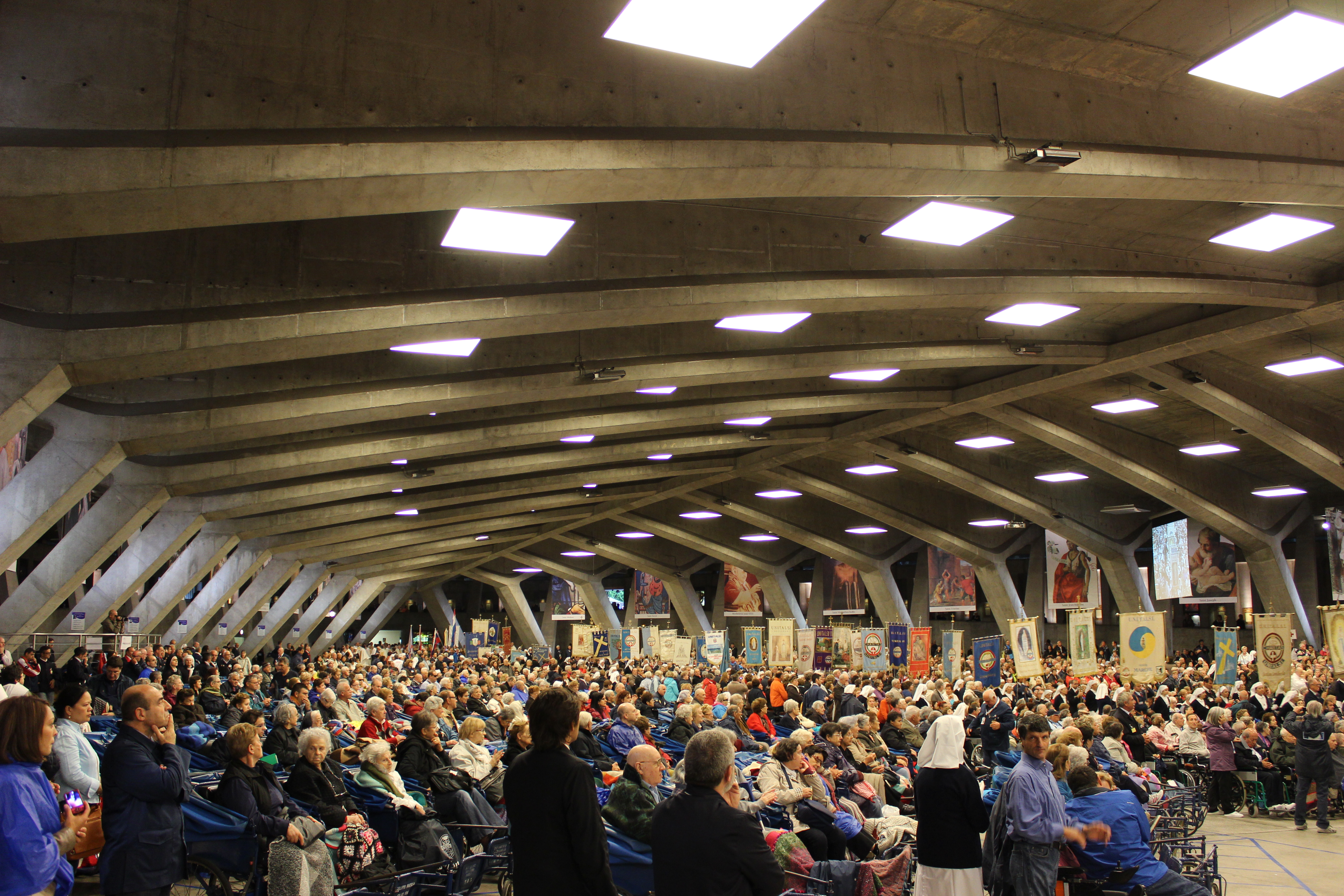 Il primo appuntamento di mercoledì 26 settembre a cui abbiamo preso parte qui a Lourdes è stata la Celebrazione Eucaristica internazionale presso la Chiesa di San Pio X alle ore 9.30, dove anche il nostro Vescovo ed i sacerdoti della Diocesi hanno concelebrato.