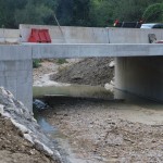 Dopo alcuni giorni di chiusura della strada, ora si transita a senso unico alternato e il personale sta procedendo al consolidamento del ponte con l’apposizione delle protezioni della sede stradale, dei massi a protezione delle spalle del ponte e, alla fine, con l’asfaltatura.