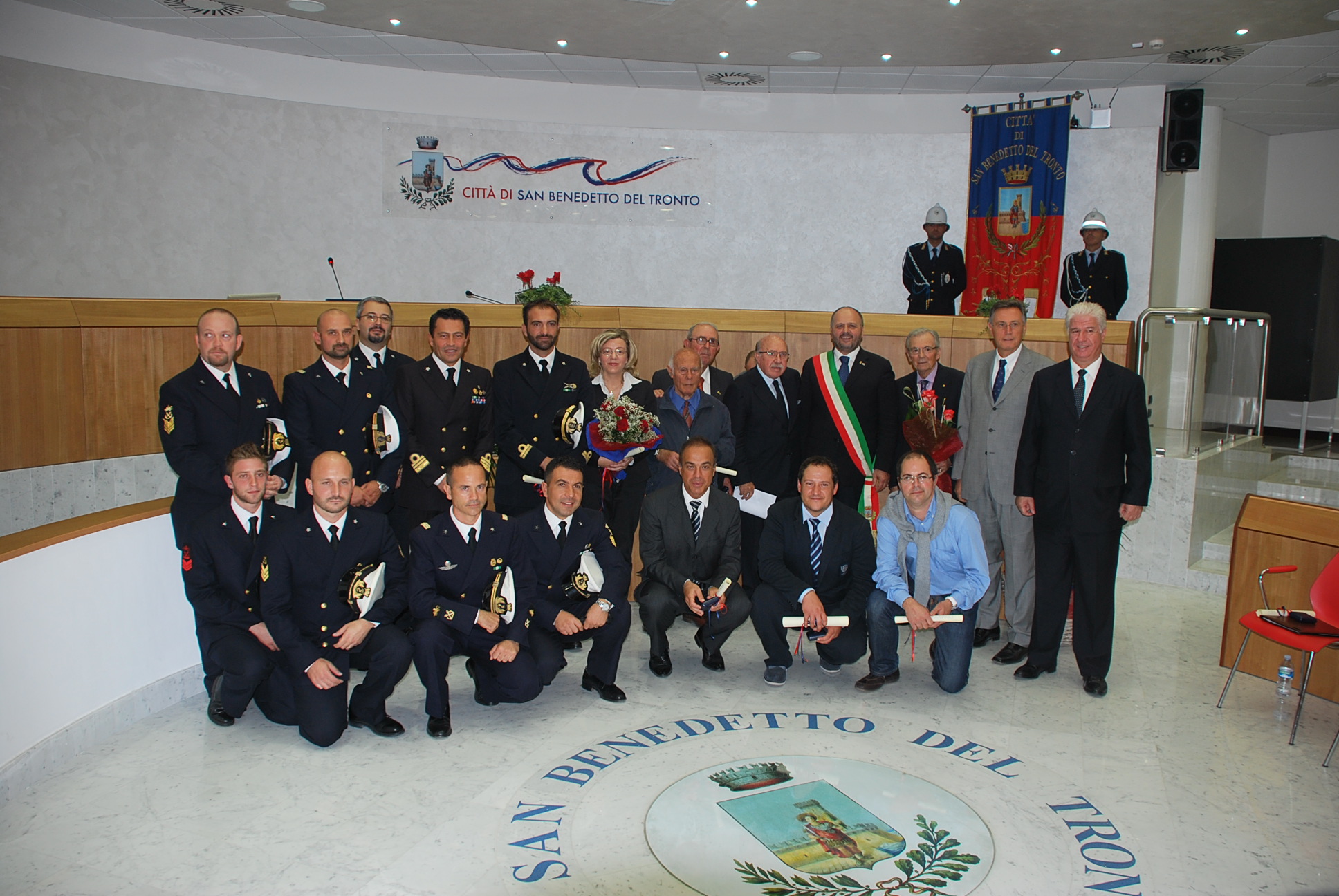 Tante le personalità che hanno preso parte alla cerimonia. Oltre al sindaco Gaspari erano presenti, il presidente del consiglio comunale Marco Calvaresi, l’ex sindaco Ugo Marinangeli, l’ex sindaco e consigliere regionale Paolo Perazzoli, il sindaco di Corfù Ioannis Trepeklis, il vice prefetto aggiunto Marco Tomassini, il Comandante della Capitaneria di Porto Michele Castaldo, il capitano della compagnia dei Carabinieri Giancarlo Vaccarini e numerose personalità civili e militari e tanti cittadini desiderosi di far sentire il loro affetto ai premiati.