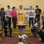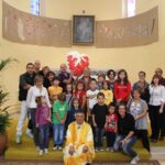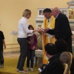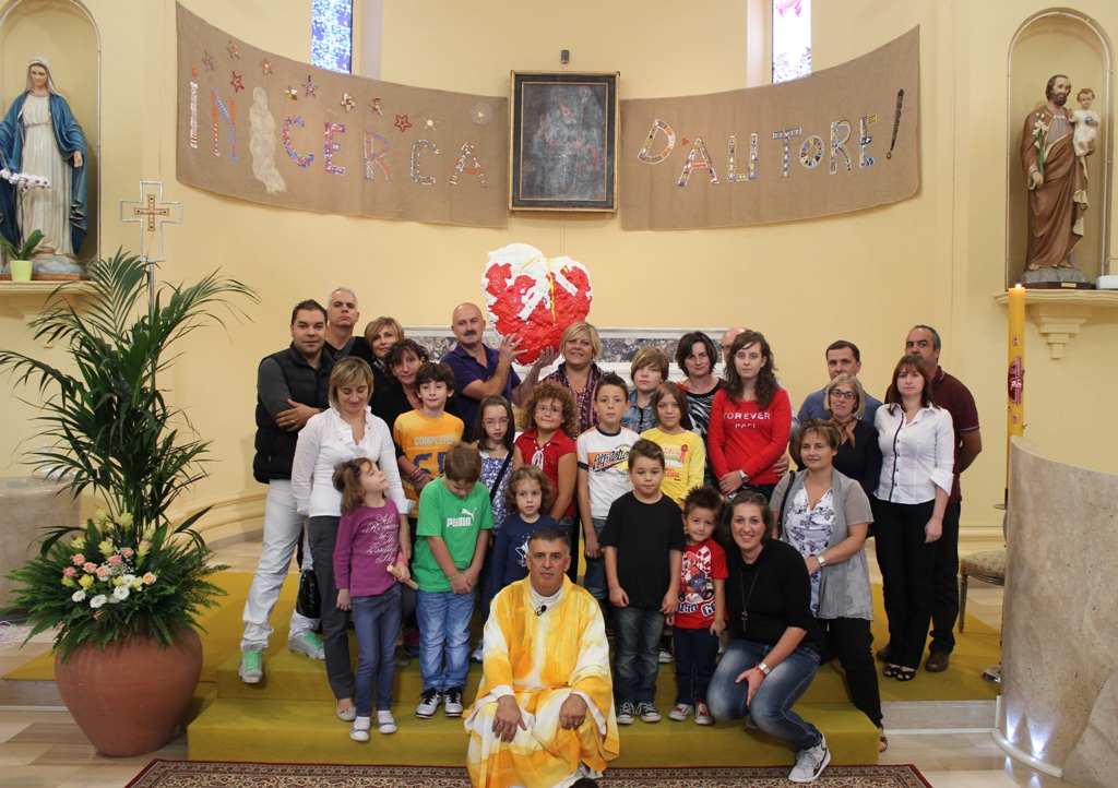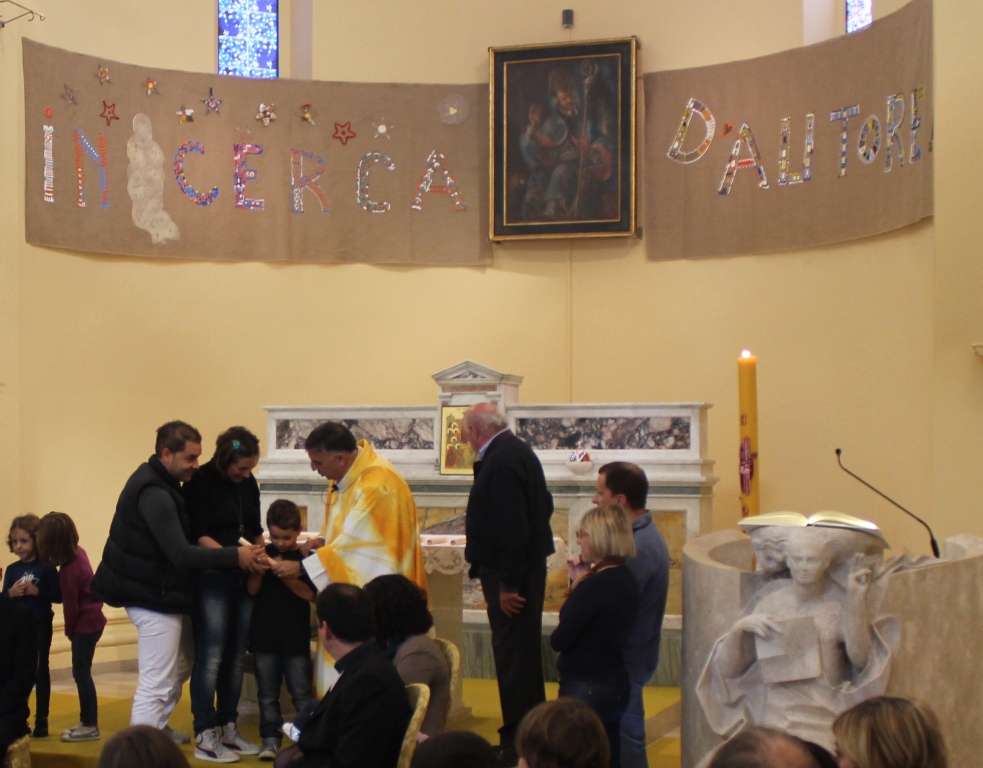 Simbolicamente il testimone è stato consegnato da Enio Illuminati (figlio di chi donò il terreno per la costruzione della parrocchia) alle famiglie e ai loro ragazzi.