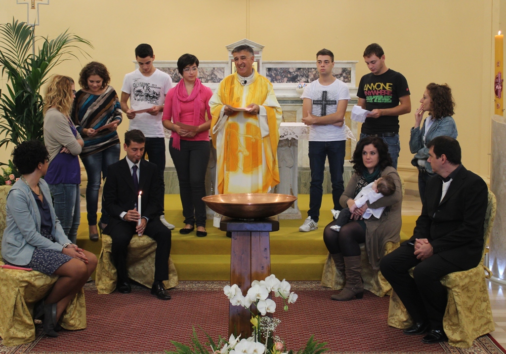 Durante la Messa è stato celebrato il battesimo e quindi l’ingresso nella comunità cristiana del piccolo Riccardo.