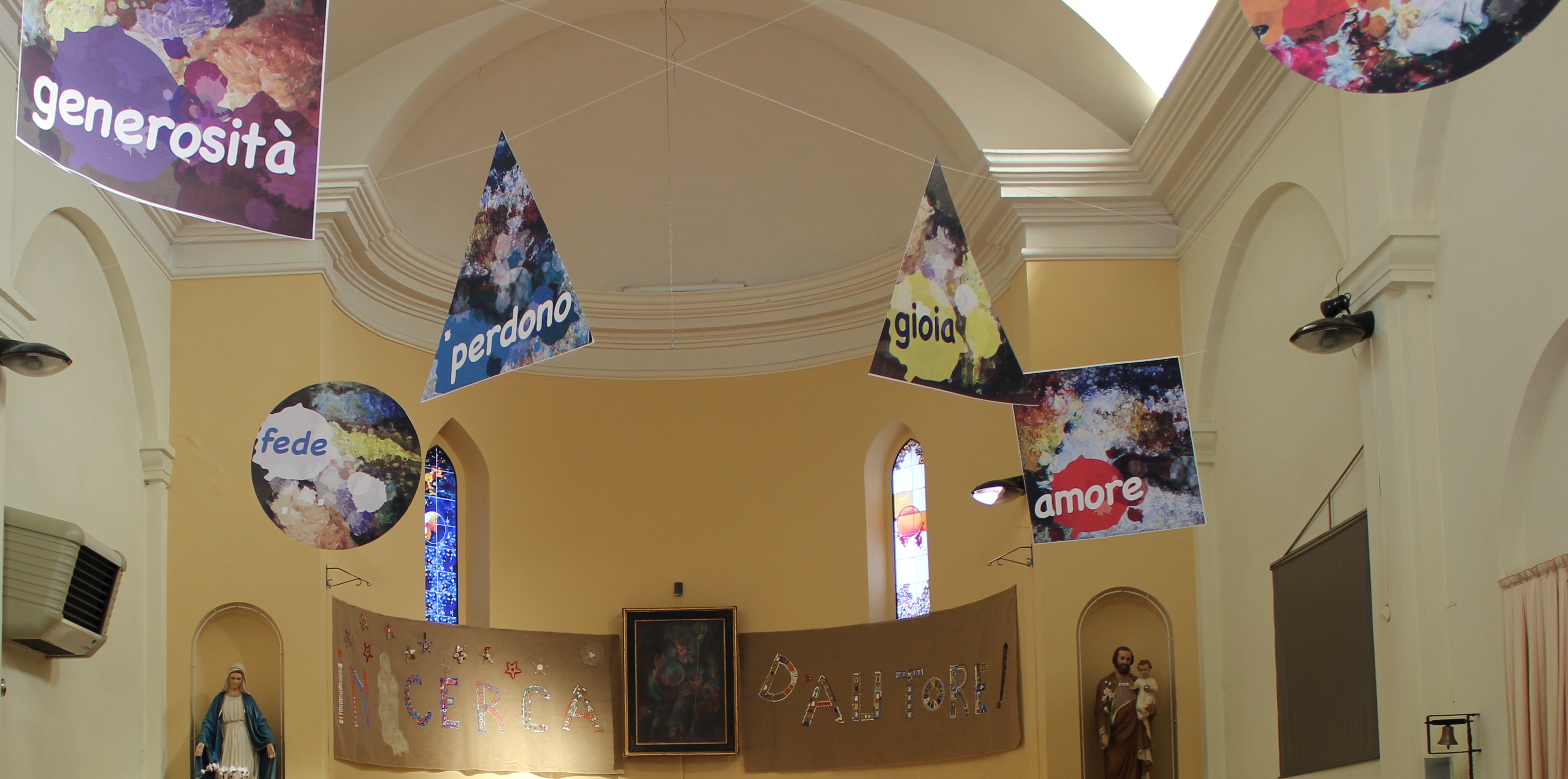 I parrocchiani in questi mesi completeranno un opera d’arte esposta sopra al presbiterio, dove, su un telo di iuta dipinta la scritta “In cerca d’Autore”, il tutto sarà realizzato insieme all’aiuto del noto artista Grottammarese, Patrizio Moscardelli.