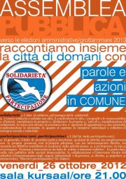 Venerdì 26 ottobre dalle ore 21 presso la sala Kursaal di Grottammare Solidarietà e Partecipazione incontrerà i cittadini in vista delle prossime elezioni amministrative 2013.