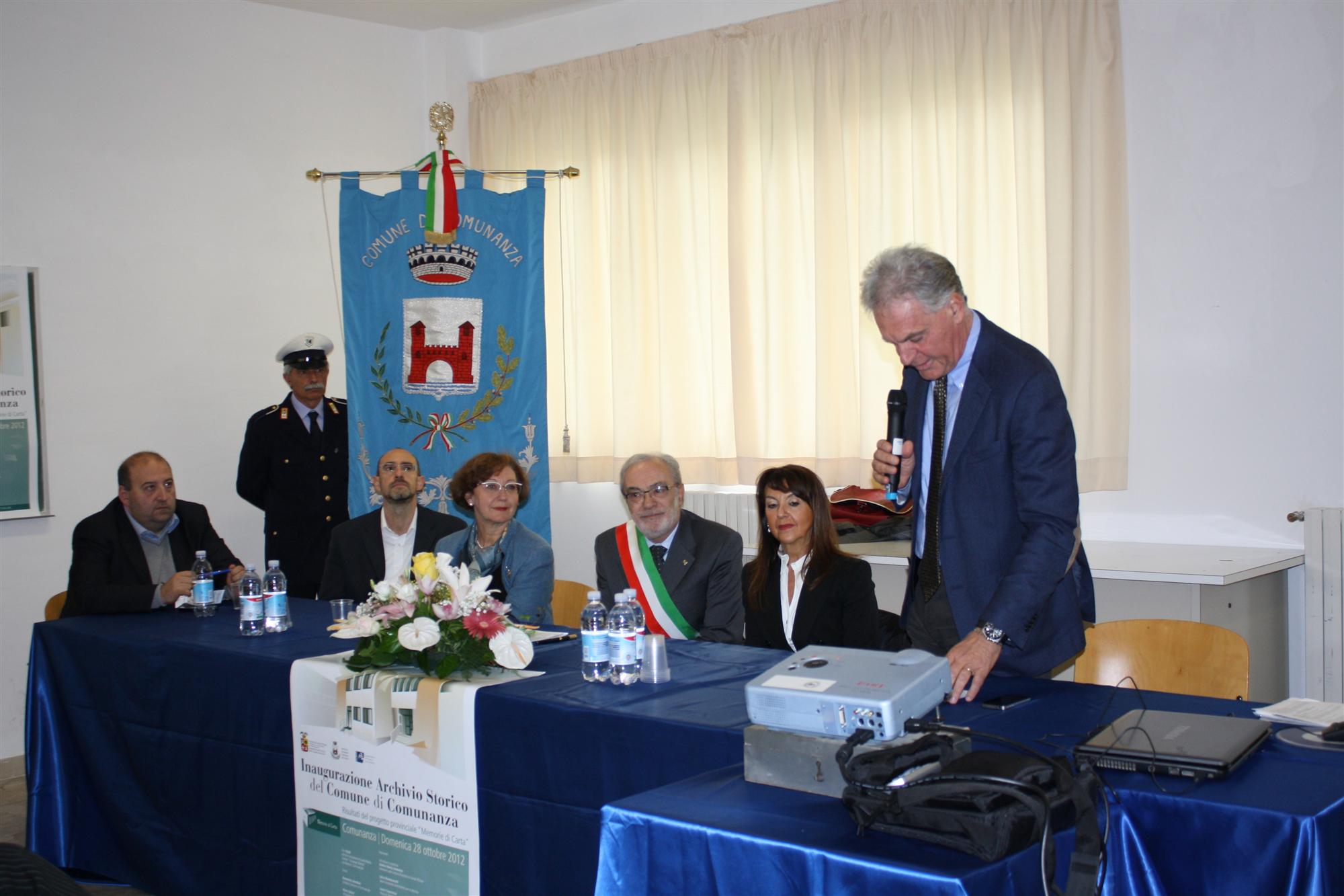 Al taglio del nastro e alla presentazione della targa sono intervenuti, tra gli altri, il Vice Prefetto Vicario dott.sa Anna Gargiulo, il Presidente della Provincia Piero Celani, l’Assessore alla Cultura Andrea Maria Antonini, il sindaco di Comunanza Domenico Annibali, il Consigliere Provinciale Domenico Gionni, il Vice Presidente della Fondazione Carisap Sergio Maria Remoli e la dott.ssa Luisa Montevecchi, al suo secondo impegno pubblico, proprio nel territorio Piceno, come nuovo soprintendente ai beni archivistici delle Marche a testimonianza del grande interesse verso un progetto unico nel panorama nazionale. Era anche presente, in rappresentanza delle Regione,la dott.ssa Laura Capozucca che ha sottolineato comela Regione Marche abbia inserito “Memorie di Carta” quale esperienza pilota nel piano culturale regionale invitando le altre Province marchigiane a seguire l’esempio della Provincia di Ascoli nel recupero del patrimonio archivistico.
