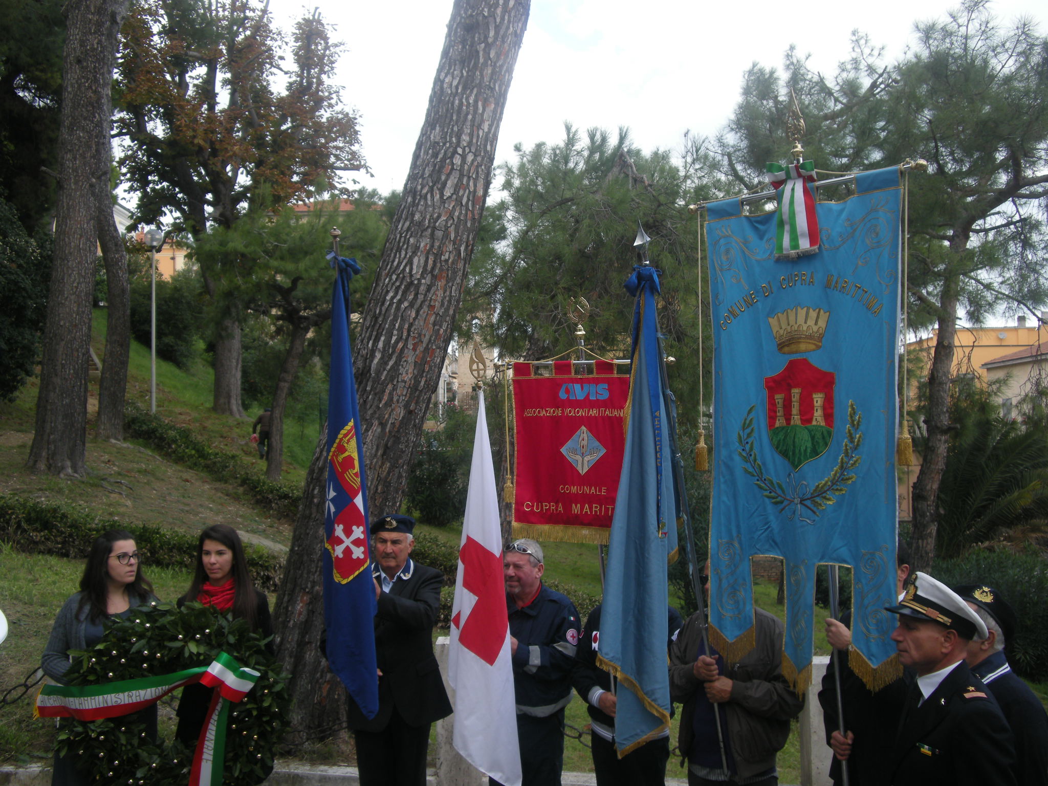 CUPRA MARITTIMA – Il 4 novembre è la giornata della Commemorazione dei caduti di tutte le guerre e a Cupra Marittima da qualche anno a questa parte la data viene ricordata nel rispetto della memoria e con la predisposizione di guardare insieme verso il futuro. Anche nel 2012 infatti sono state deposte le corone di alloro nei punti di ricordo legati alla ricorrenza: in piazza della Libertà sotto alle lapidi dei caduti della Prima e Seconda Guerra Mondiale, al monumento di Caduti di tutte le guerre e al monumento dei Caduti in Mare. Presenti alla mattinata il sindaco Domenico D’Annibali, l’assessore alla cultura Luciano Bruni, l’assessore alle Politiche Sociali Anna Maria Cerolini, i rappresentati delle varie associazioni come Società Operaia, Croce Rossa Italiana, Avis, Protezione Civile, i Marinai D’Italia, e i rappresentanti delle forse dell’ordine ovvero i Carabinieri, la Polizia Municipale e la Capitaneria di Porto. Hanno partecipato al corteo anche alcuni cittadini di tutte le età, dai più giovani ai più anziani. «In occasioni come questa – ha affermato il sindaco – ribadiamo il valore di quanti hanno dato la vita per la Patria. Fondamentale oggi è essere dei bravi cittadini Italiani, perché solo facendo il nostro dovere in famiglia, a lavoro e nella società potremo essere dei bravi cittadini Europei». Ha aggiunto l’assessore alla Cultura: «Il messaggio da diffondere è che questa ricorrenza non rimanga nella retorica, non si tratta infatti solo di discorsi appartenenti al passato ma riguardano la nostra vita attuale e anche il futuro. Per non permettere che tutto quanto è stato fatto dai nostri predecessori cada nel dimenticatoio e sia dato per scontato, il nostro dovere di cittadini è quanto meno quello di interessarsi e partecipare alla vita del proprio paese».
