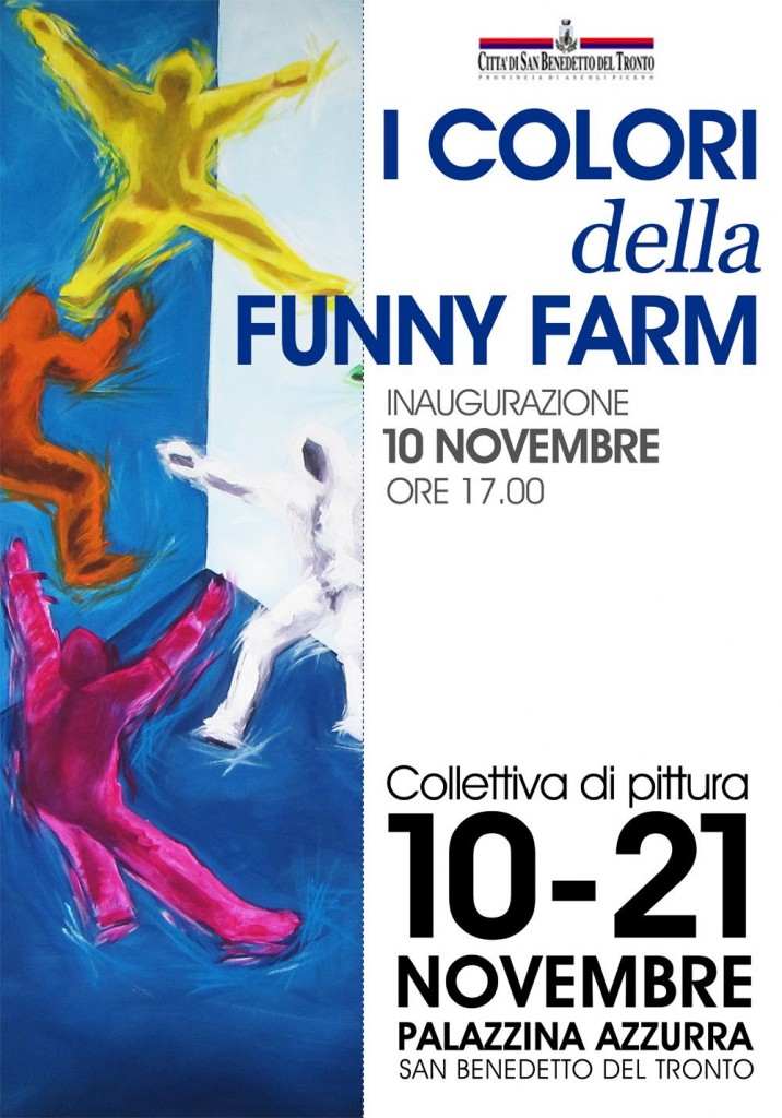 SAN BENEDETTO DEL TRONTO – La collettiva di pittura “I colori della Funny Farm”, in programma alla Palazzina Azzurra dal 10 al 21 novembre 2012 (l’inaugurazione è in calendario sabato 10 novembre alle ore 17) nasce dalla voglia comune di un gruppo di artisti, in grande maggioranza donne, di impadronirsi dell’uso di un mezzo espressivo colorato, ognuno dedicandosi ad una specifica dominante cromatica.