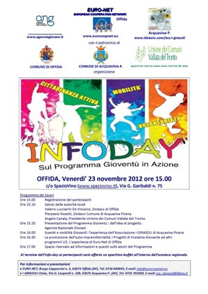 Gli obiettivi della giornata saranno quelli di far conoscere il programma Gioventù in Azione in generale e di analizzare nello specifico le azioni 1.1 (scambi giovanili), 1.2 (Iniziative Giovanili( e 2 (Servizio Volontario Europeo).