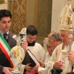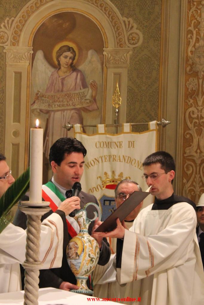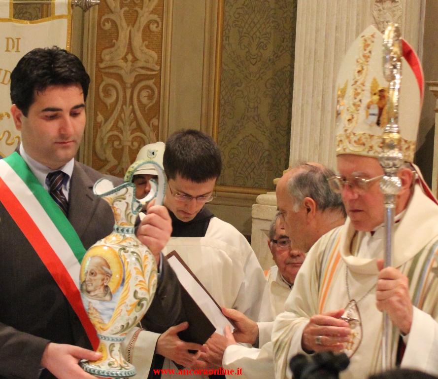Dopo il taglio del nastro, il Sindaco Stracci ha donato l’anfora con dentro l’olio per la lampada del Santo.