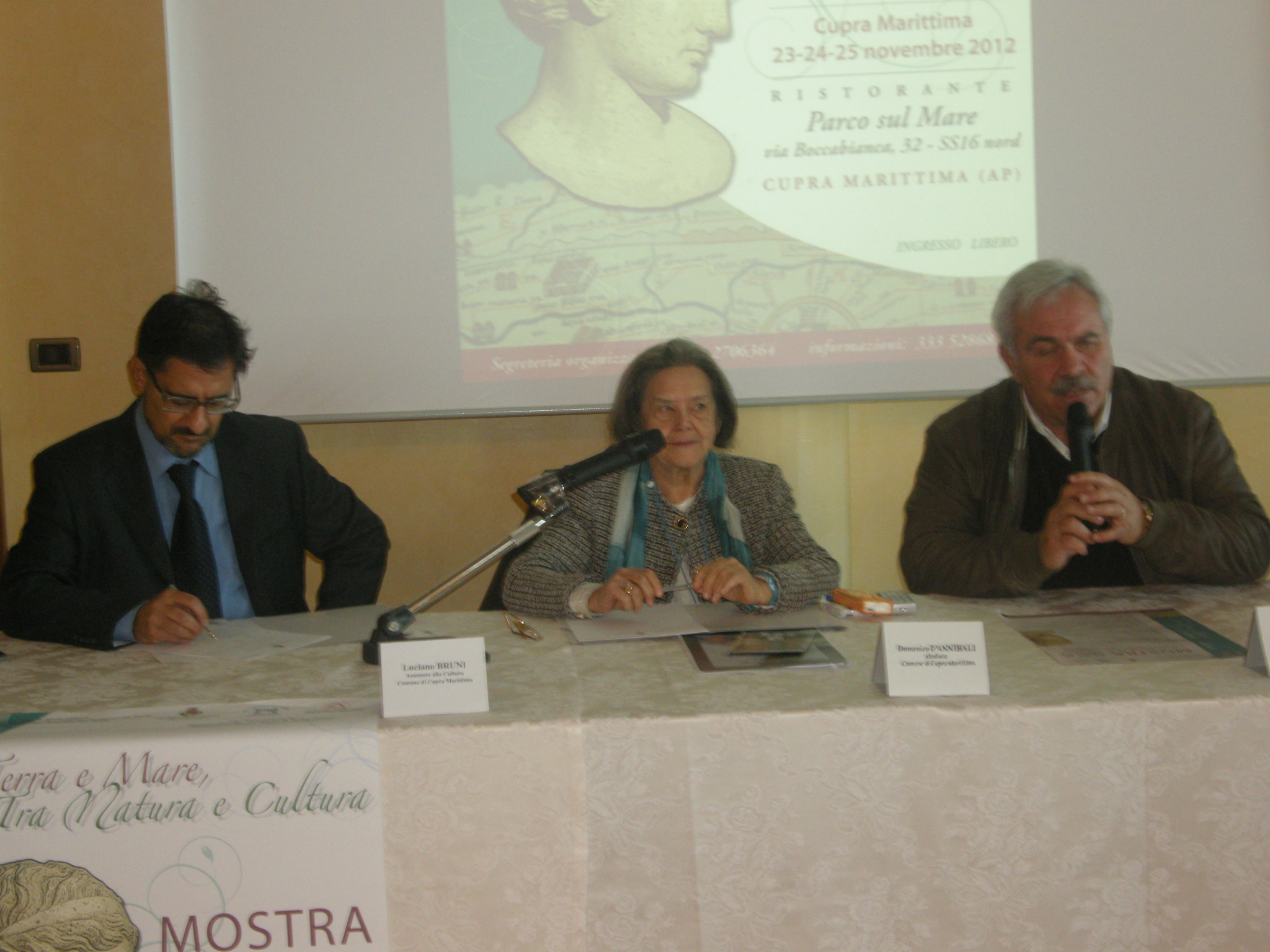 Ha aggiunto Luciano Bruni assessore alla cultura: «Quando siamo entrati in amministrazione, nel 2009, abbiamo trovato sì tanto lavoro fatto intorno al Parco Archeologico, ma tanto lavoro ancora da fare. In passato infatti erano stati già effettuati degli scavi, erano stati avviati progetti di valorizzazione del sito, collaborazioni con scuole italiani e straniere, senza dimenticare il costante lavoro dell’Archeoclub. Con questo ultimo stralcio di lavori, dal 2009 al 2012, abbiamo approfondito quello che dovrà essere la base per proseguire in modo proficuo. Abbiamo contribuito economicamente allo scavo, alla recinzione dell’area, alla realizzazione della foresteria all’interno del Parco, all’allestimento del laboratorio, alla sistemazione della strada “Passeggiata Archeologica”, insomma abbiamo cercato di completare alcuni aspetti fondamentali. Sono stati portati alla luce reperti importanti, posti all’attenzione di esperti archeologi provenienti dalle più rinomate Università, che stanno ancora attualmente studiando per aiutarci a capire cosa era Cupra e cosa questa terra sta cercando di dirci. Il frutto di questo lavoro è inoltre finalmente raccolto in un data base, un sistema informatizzato che raccoglie tutti i dati riguardanti i pezzi ritrovati, in modo da rendere più agevole lo studio e la ricerca. L’ideale sarebbe creare a Cupra un vero e proprio centro studi archeologici».