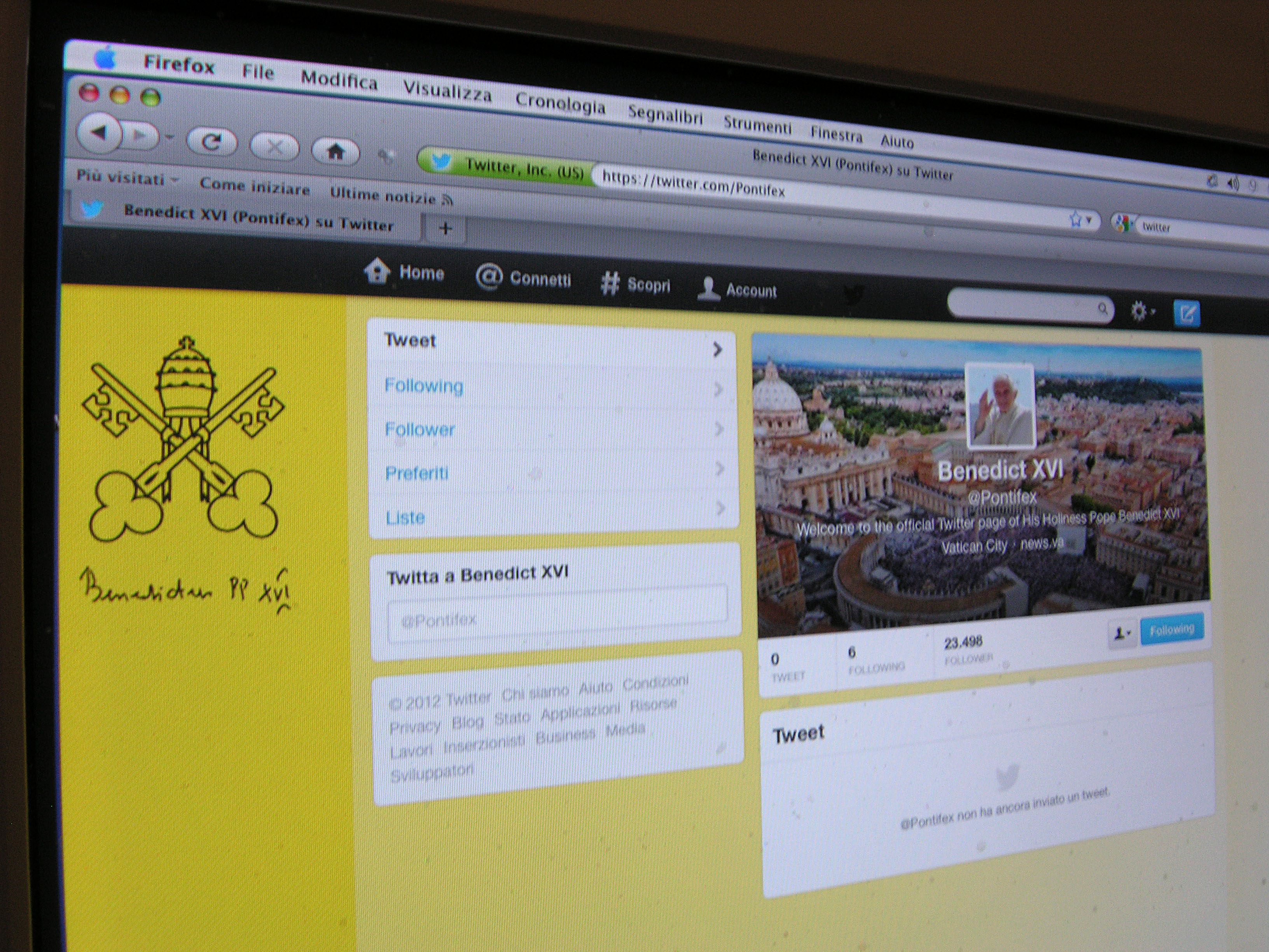 VATICANO – “Scintille di verità” e “perle di saggezza”: questo il “cuore” della presenza del Papa su Twitter, che prenderà ufficialmente il via con il primo tweet che verrà lanciato durante l’udienza generale mercoledì 12 dicembre, festa di Nostra Signora di Guadalupe. L’evento di Benedetto XVI che digiterà e spedirà il primo messaggio di 140 caratteri, tramite Twitter, è stato illustrato il 3 dicembre in Vaticano. L’arcivescovo mons.Claudio Maria Celli, presidente del Pontificio Consiglio delle comunicazioni sociali, ha riferito dello “stupore” di alcuni giornalisti che nei giorni scorsi avevano argomentato su questa novità, domandandosi se non si trattasse di “un tributo eccessivo alla modernità”. “Twitter – ha spiegato mons. Celli – ha oltre 500 milioni d’iscritti e di essi oltre 140 milioni sono attivi. Di loro oltre il 40% è composto da giovani. Il desiderio del Papa è di entrare in contatto con il maggior numero di uomini e donne del nostro tempo, dovunque essi si trovino e con qualunque mezzo sia possibile”. Per questo “Twitter si presta, per la sua natura di mezzo rapido e di forte divulgazione, a diffondere le ‘scintille di verità’ e le ‘perle di saggezza’ che il Papa vorrà scrivere”. Le lingue dei tweet del Papa saranno per ora 8: inglese, spagnolo, italiano, portoghese, tedesco, polacco, arabo e francese. L’indirizzo centrale sarà in inglese: @pontifex; quello italiano sarà @pontifex_it.