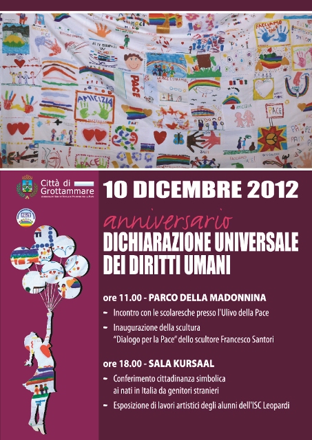 GROTTAMMARE – Il conferimento della cittadinanza simbolica agli stranieri di seconda generazione è l’evento clou delle iniziative promosse dall’amministrazione comunale per ricordare, lunedì prossimo, il 64° anniversario della Dichiarazione universale dei diritti umani firmata a Parigi il 10 dicembre 1948.