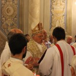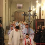Durante l’offertorio sono stati offerti al Vescovo gli otri di olio che serviranno a tenere accesa la lampada per la cappella che custodisce la riproduzione della Santa Casa presso la Basilica di Ripatransne.