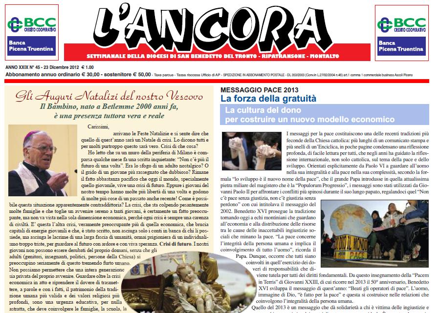 DIOCESI – In tutte le parrocchie della Diocesi potete trovare il nuovo numero del settimanale Diocesano l’Ancora.