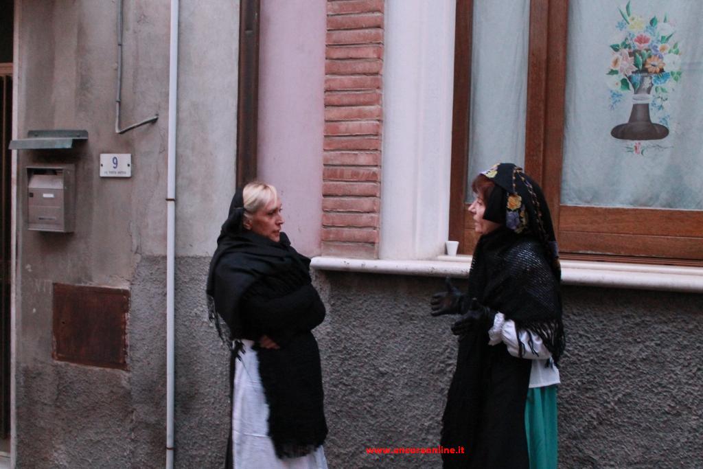 Riguardo all’aspetto artistico, dopo quindici edizioni, il format è collaudato: le scenette tutte rigorosamente in dialetto, si sono susseguite in modo incalzante tra una vietta e l’altra dell’antico borgo. Non c’è stato bisogno neanche di preoccuparsi a realizzare grandi scenografie perché l’ambientazione è già suggestiva di per sé. Antichi portoni, piccoli dettagli di una finestra o dell’angolo di una piazza, grazie agli attori dell’Associazione Ribalta Picena, si sono rituffati nel loro passato, un passato ormai lontano, ma che fa ancora capolino in questo nuovo millennio.