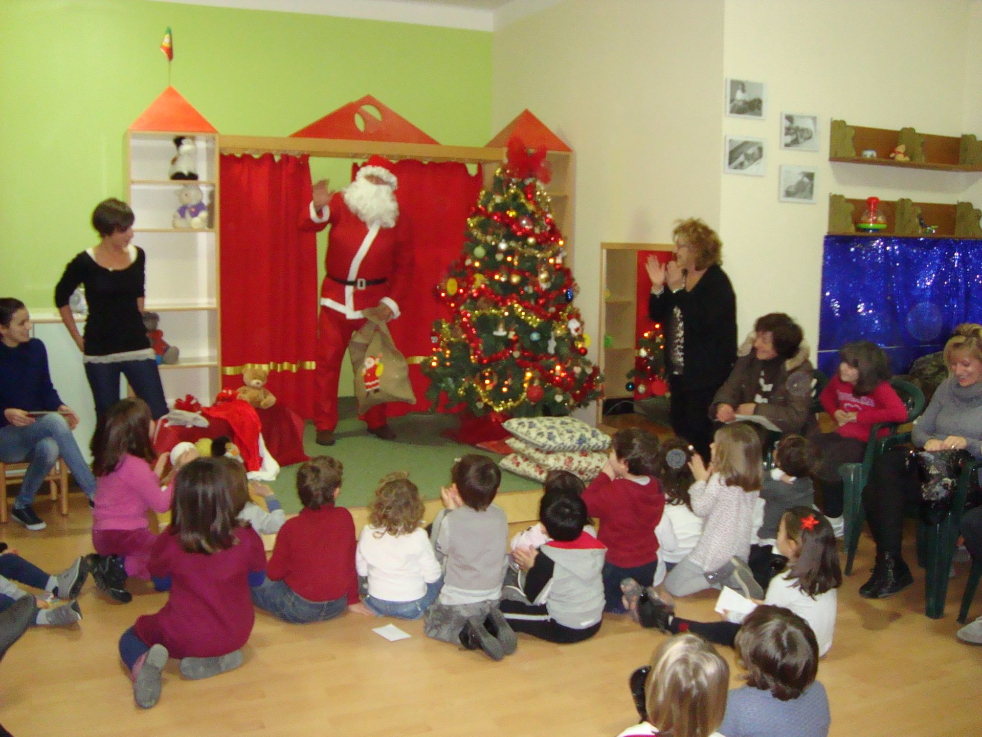 Con la lettura animata “La Vigiliadi Natale”, Babbo Natale è letteralmente “sbucato” dalla tenda del teatrino e si è intrattenuto con ogni bambino accogliendo la letterina dei desideri, ascoltando una poesia o una canzoncina. Il tutto si è svolto in un clima di grande emozione ed è stato incorniciato da uno scenario particolarmente suggestivo caratterizzato dal presepe e dall’albero di Natale realizzati a “Favole a merenda” dagli stessi bambini nelle puntate precedenti.