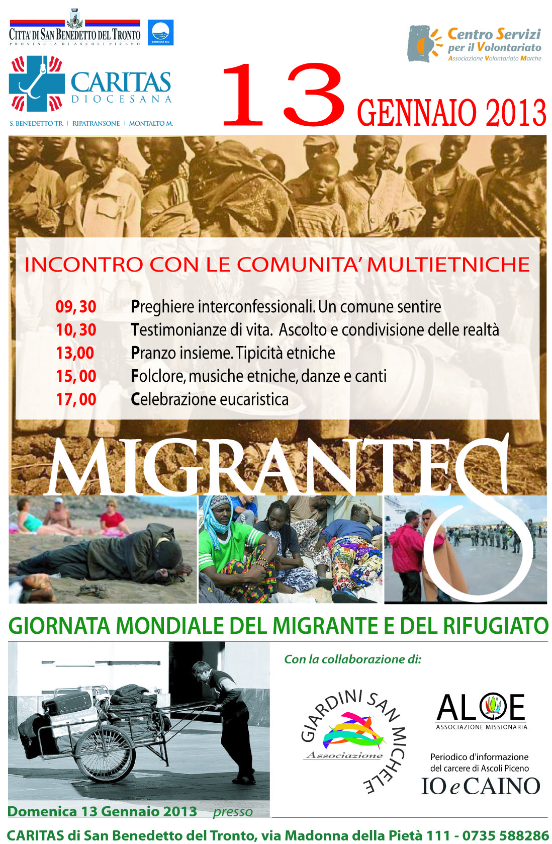 DIOCESI – Una grande occasione di fraternizzazione fra “nativi e nuovi cittadini”, nel segno della multi etnicità e della multiculturalità nella “99° Giornata Mondiale del Migrante e del Rifugiato” che quest’anno cade appunto il 13 gennaio 2013.