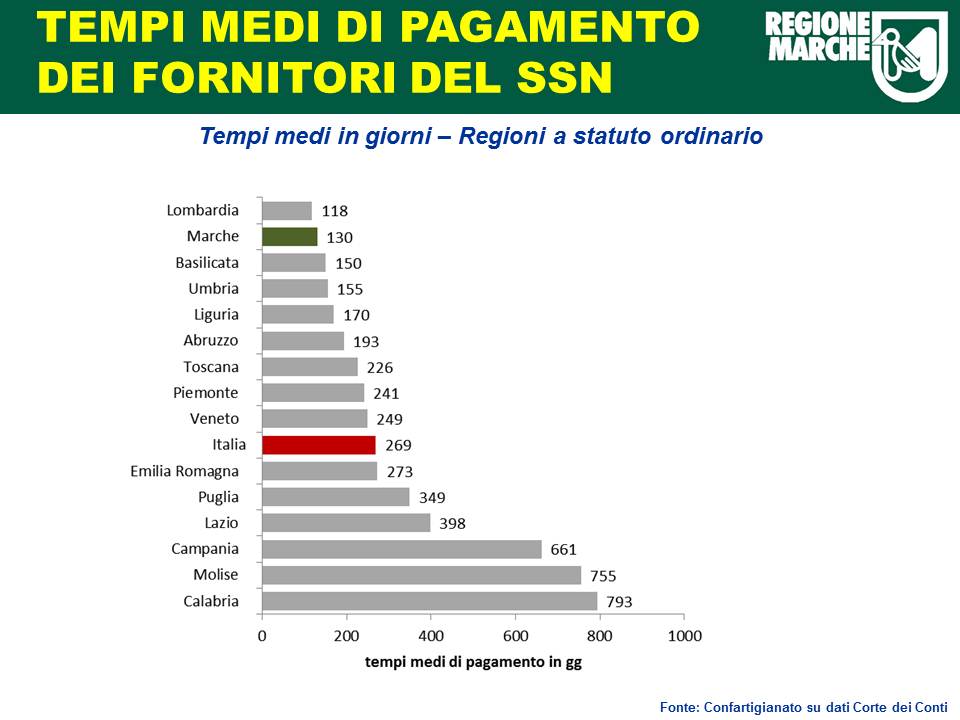 REGIONE MARCHE – Seconde in Italia, tra le Regioni a Statuto ordinario, per velocità nel saldare i debiti contratti: 130 giorni, contro una media nazionale di 269 e picchi di 793 giorni.